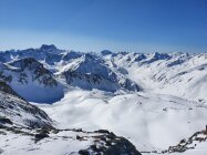 Hoch von Cinuos-chel-Brail durch die Val Punt Ota zum Piz Punt Ota. Abfahrt unverspurt via Vallorgia durchs Val Susauna nach Chapella La Resgia.