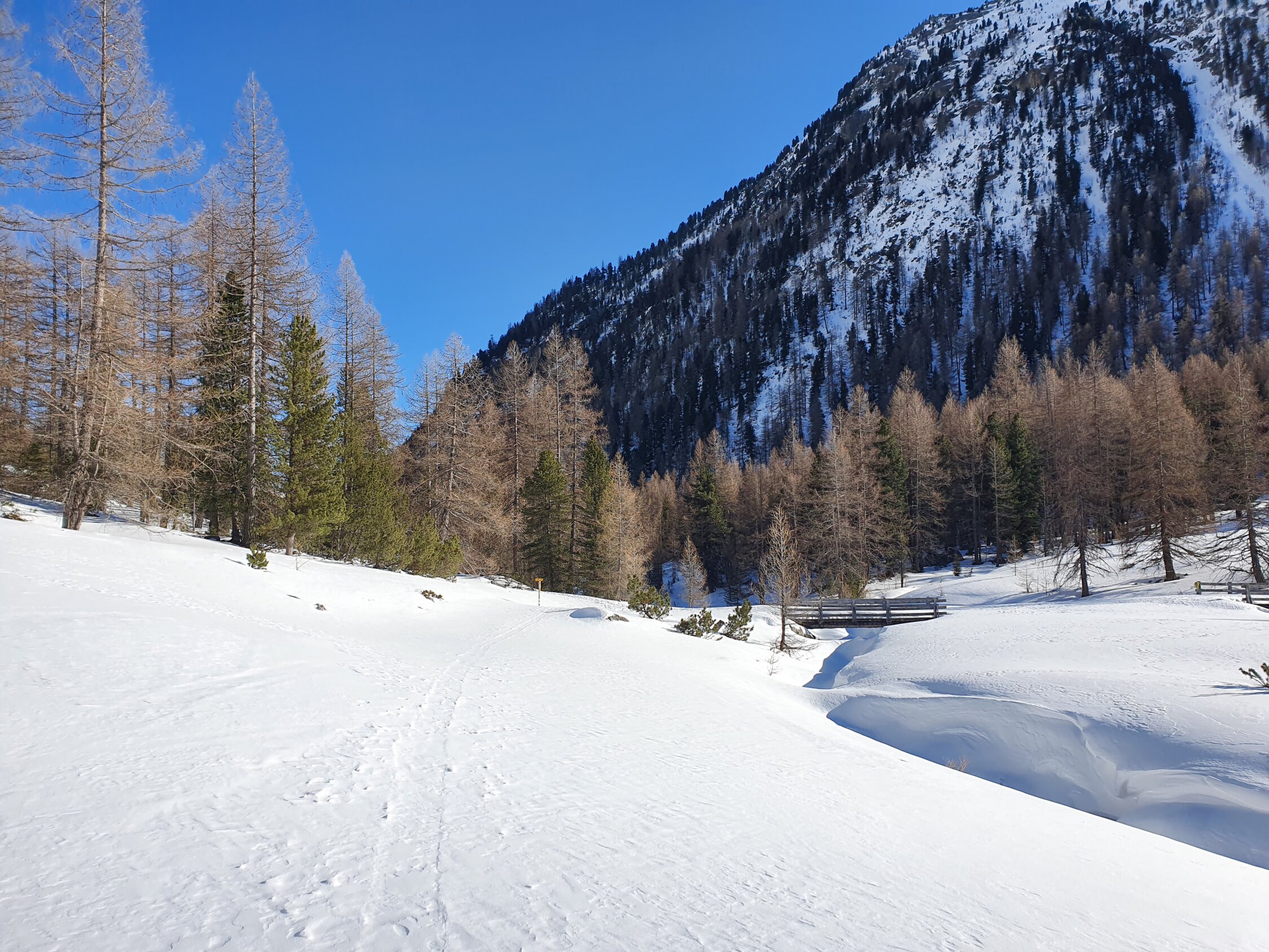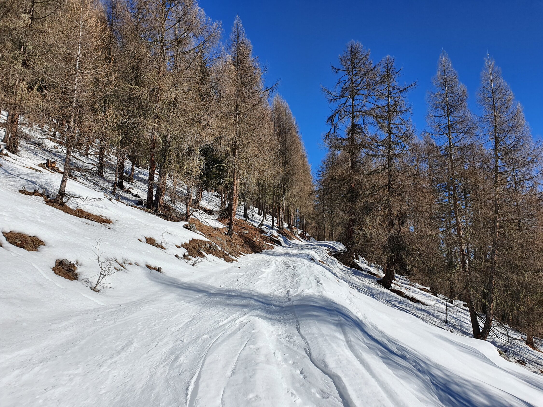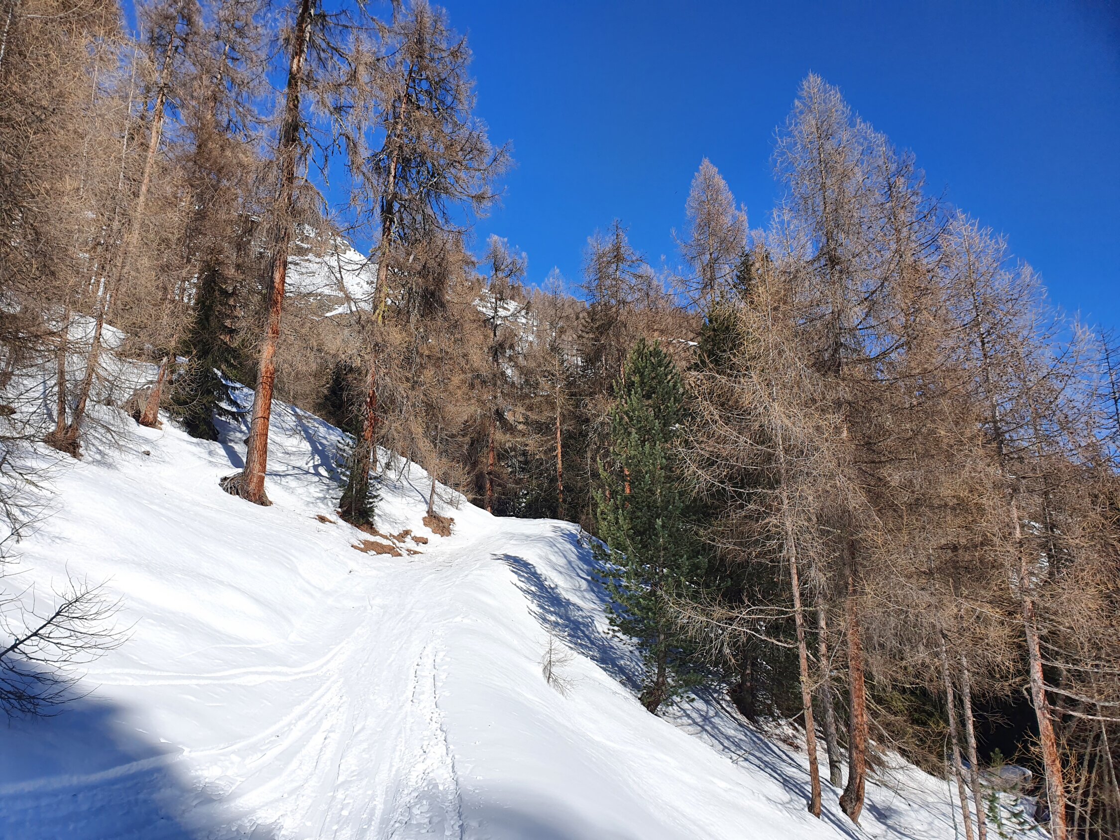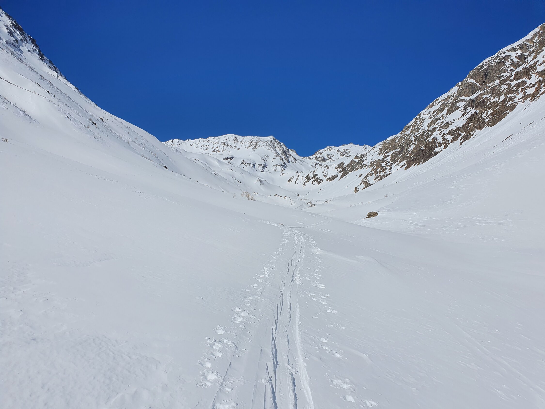 Keine Spuren für die Abfahrt ins Val Susauna gesichtet. Erst ab Alp Pignaint (P1897) hatte es Spuren, die von der Val Viluoch kamen.