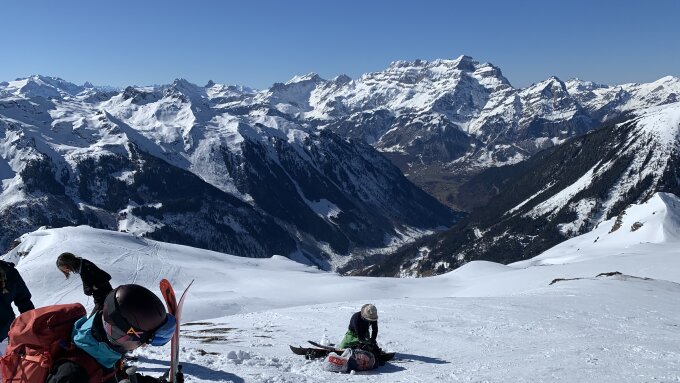Aufstiegsspur am Morgen teils etwas eisig. Abfahrt ins Mühlibachtal mit wunderschönem Pulver. Einige kurze Tragstellen auf dem Weg kurz vor Engi (werden mit Sonne/Wärme wohl schnell mehr).
