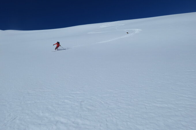 Noch länger gut. Direkte Abfahrt vom Gipfel zur Bärentaler Alp wahrscheinlich möglich, hatte aber keine Spuren.