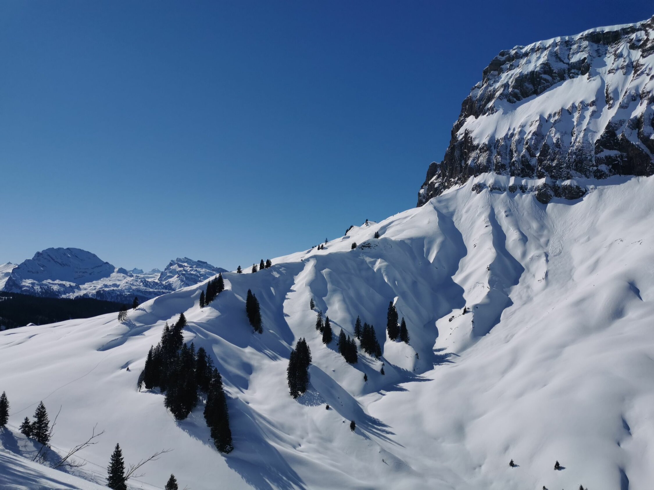 Start um 9 Uhr bei der Brücke hinter Richisau (nahe Pkt 1135, ab Brücke gesperrt: nicht geräumt, nicht fahrbar), Grosskampftag: Parkplatz schon voll, parkieren entlang der Strasse oder beim Restaurant. Genug Schnee und gute Spur von Anfang an. Saukalt, Sonne erst ab Pkt. 1716. Auf guter Spur mit viel Volk den endlos erscheinenden, gestuften Hang hinauf bis zum "Gipfel". Tolle Rundsicht, aber kalter Wind. Abfahrt mehr oder weniger im Sinne das Aufstiegs bis gegen Pkt. 1716, dann nach Altstafel hinunter und durchs Chlöntobel (Obacht auf den Bach im Frühling wenns mal taut!) zurück zur Brücke bei Pkt 1390. Guter Schnee, stellenweise schon etwas schwerer, aber immer locker zu fahren (auch die verspurten Stellen), naturgemäss 10'000 Spuren, aber es gibt immer noch freie Hangabschnitte. Die Rückfahrt auf der Pragelpassstrasse ab Pkt. 1390 ist dank der guten Spur angenehm, auch die Splitboarder hatten keine Mühe.