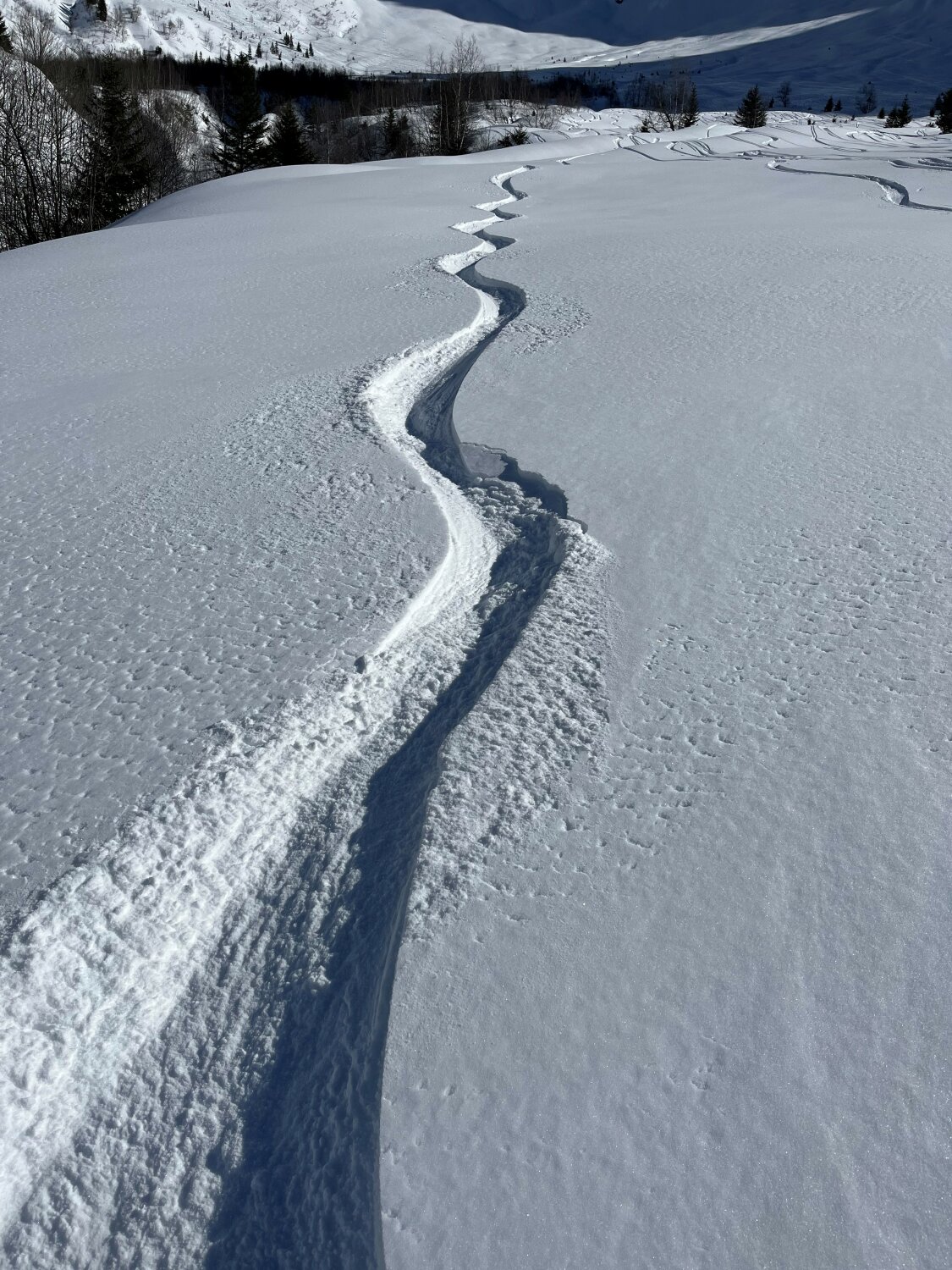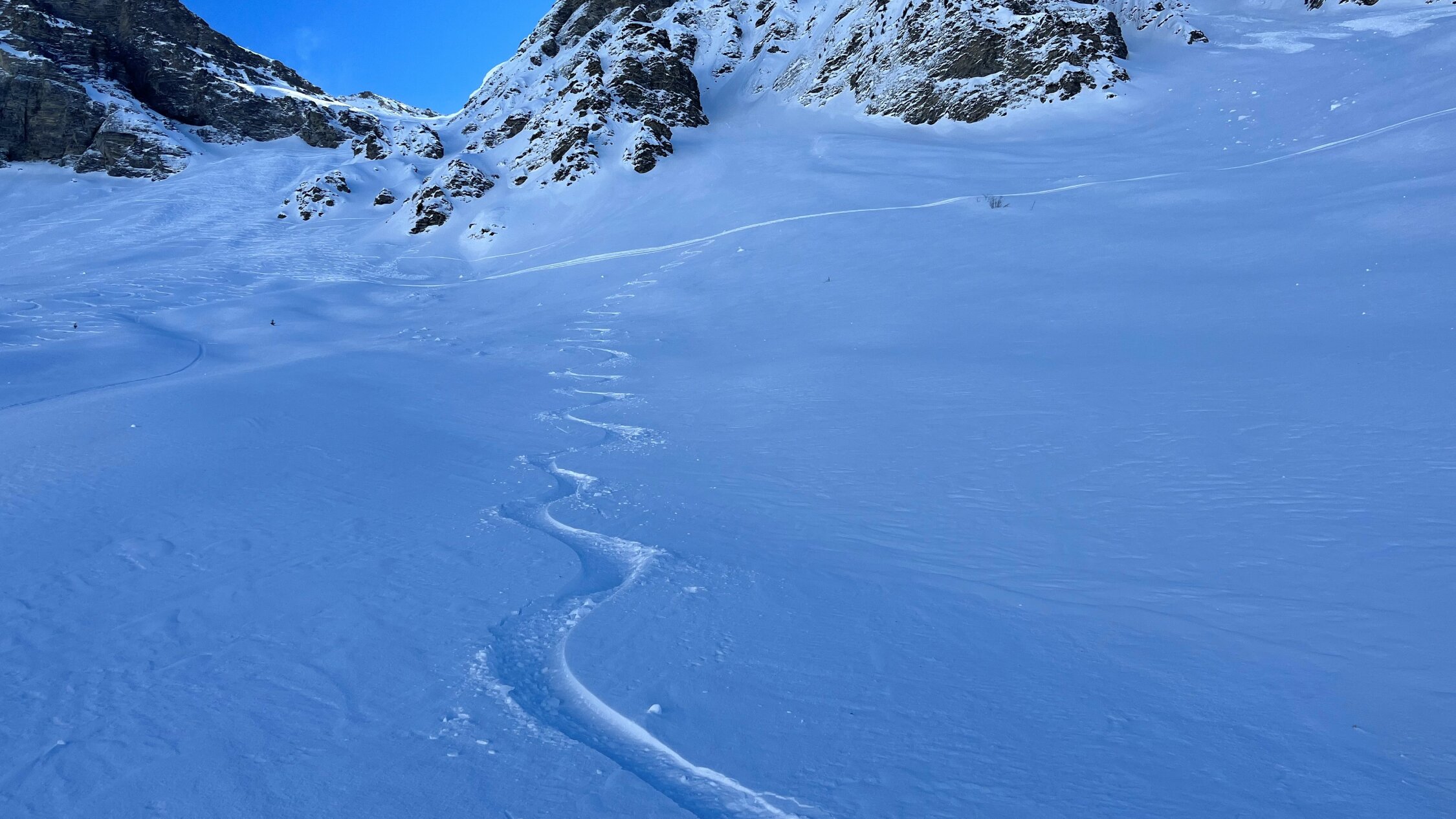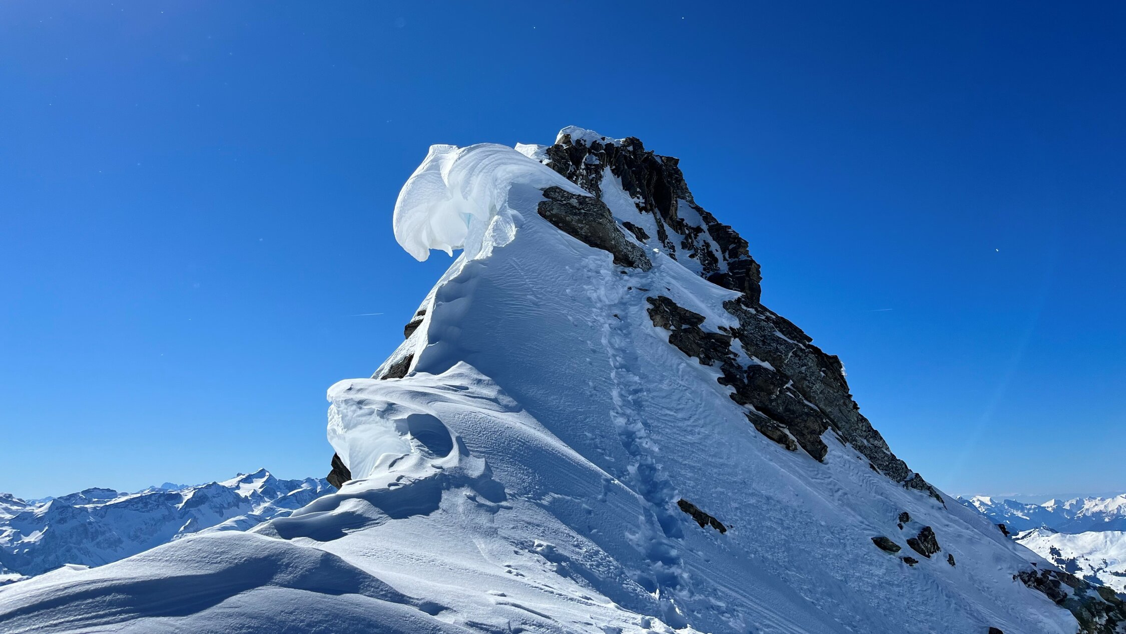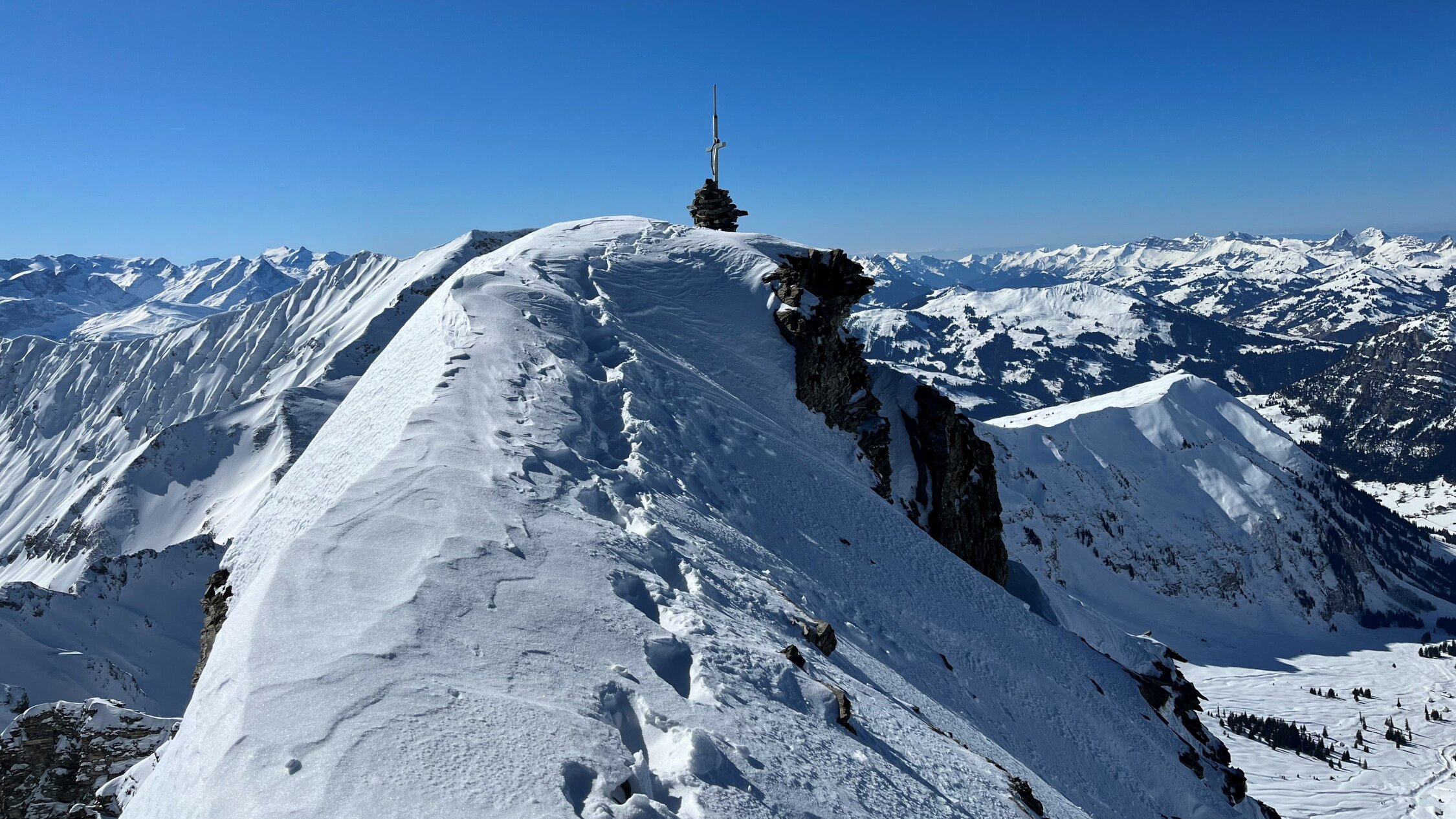Topverhältnisse auf das Gsür. Gut angelegte Aufstiegsspur durch den Steinbodenhang. Am Schluss des Hangs muss man nicht unbedingt über die Gwächte steigen, sondern kann man mit den Skie angenehm links hochlaufen und am Ende der Gwächte in das Rügge Tälti queren. Es braucht keine Harscheisen. Über den Gsürgrat herrschen sehr gute Verhältnisse. Steigeisen und Pickel können hilfreich sein, aber ich habe keine gebraucht, da es sehr guten Trittschnee hat. Bei der Felskletterstelle hilft das neue dicke Fixseil. Auf das Landfogtehore war reger Betrieb, aber auf das Gsür war ich alleine unterwegs. Beim Abfahren hat es, dank den tiefen Temperaturen, Pulverschnee von oben bis unten. Auch wenn es schon einige Spuren hat, findet man noch genügend Platz um Firstelines zu ziehen. Es war eine traumhaft schöne Tour.