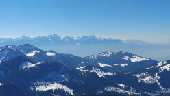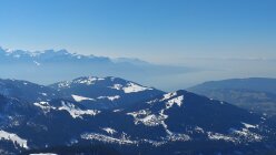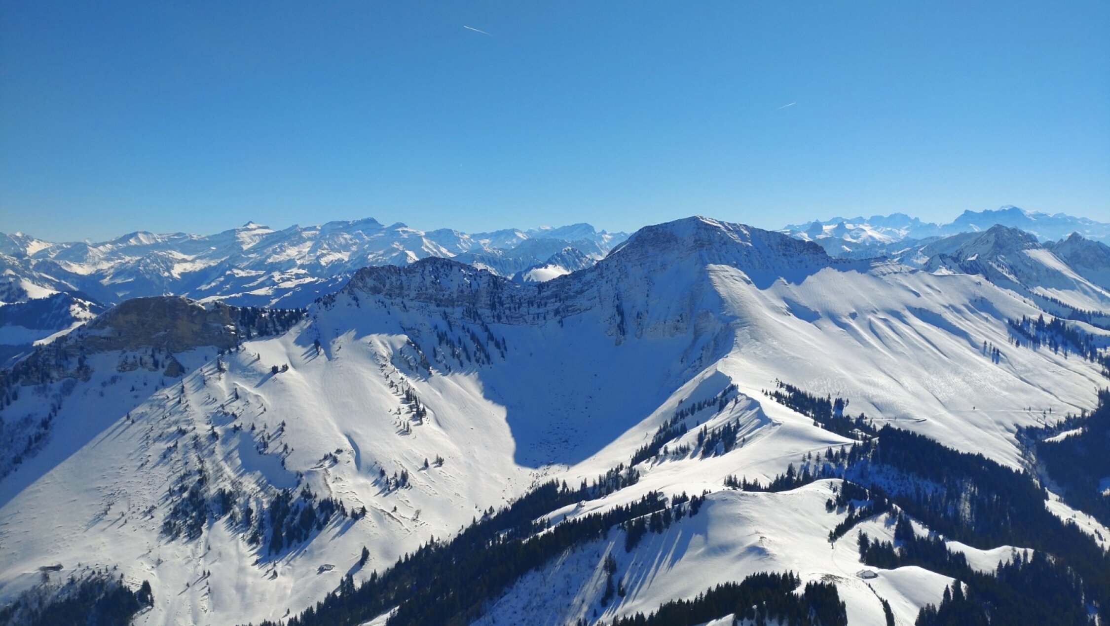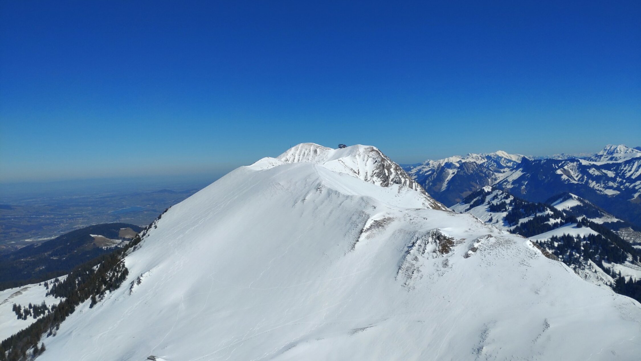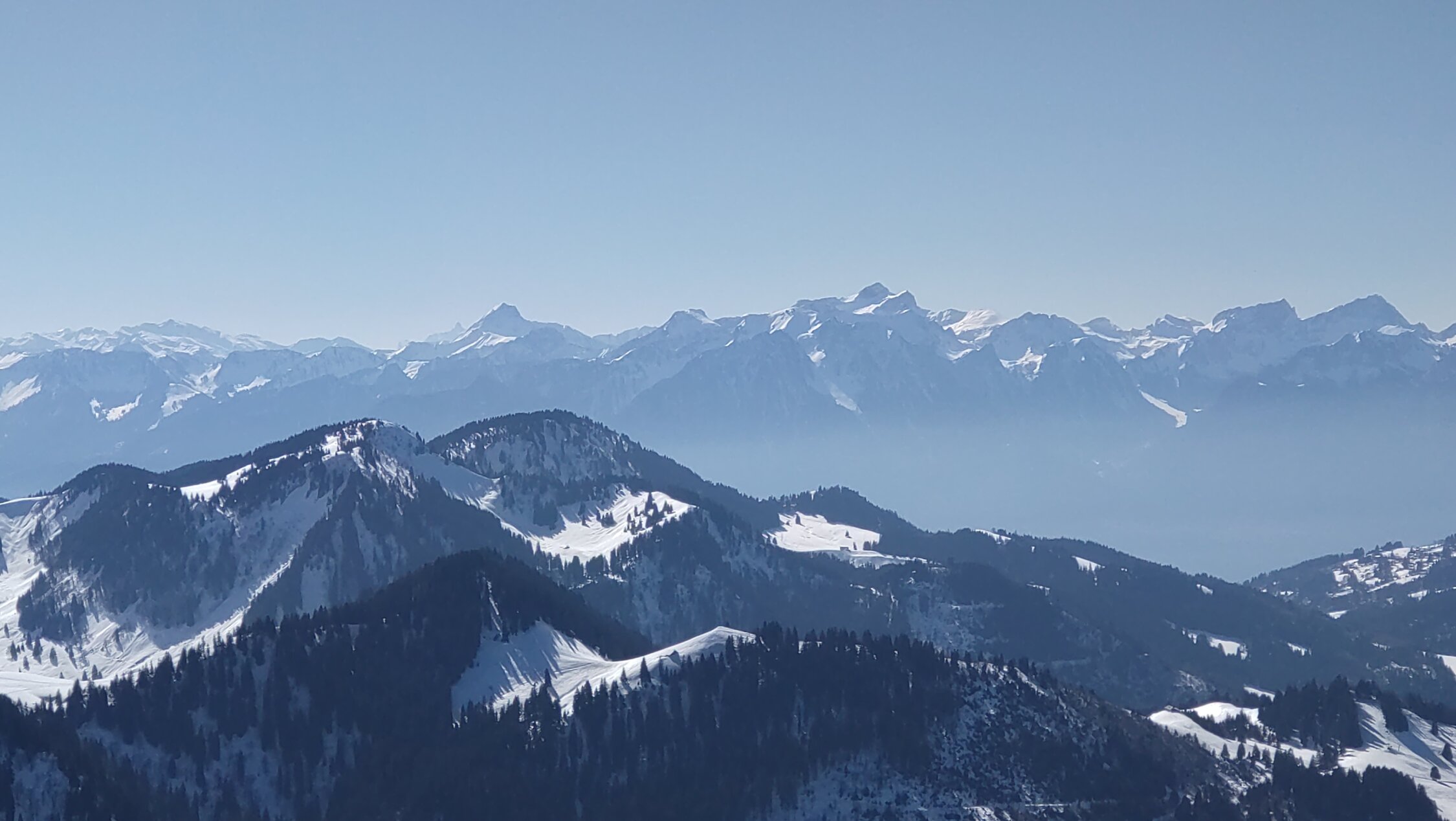 Von diesem Berg geniesst man eine wunderschöne Aussicht in die Freiburger-, Waadtländer-, Walliser- (teilweise) Berneralpen, und ins Mont Blanc Massiv.