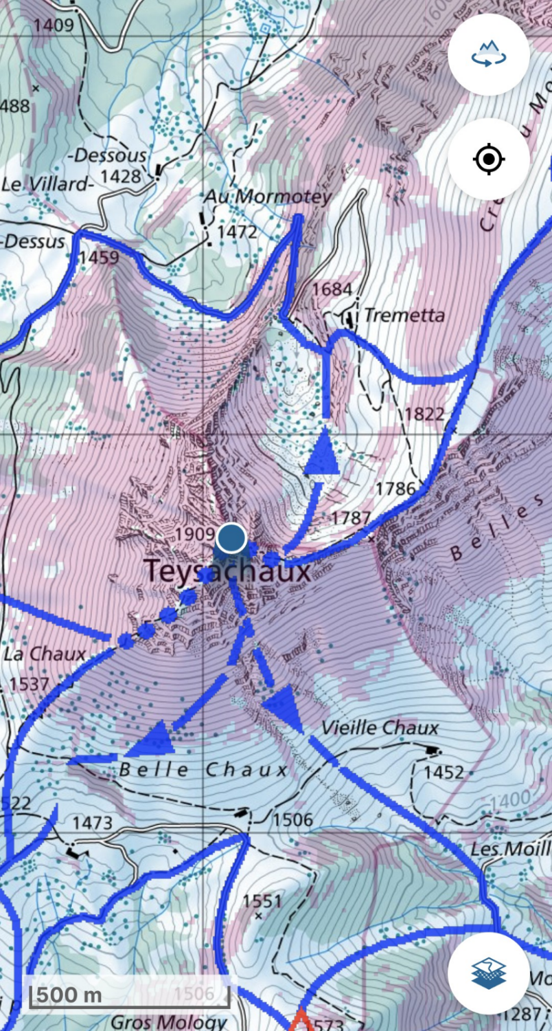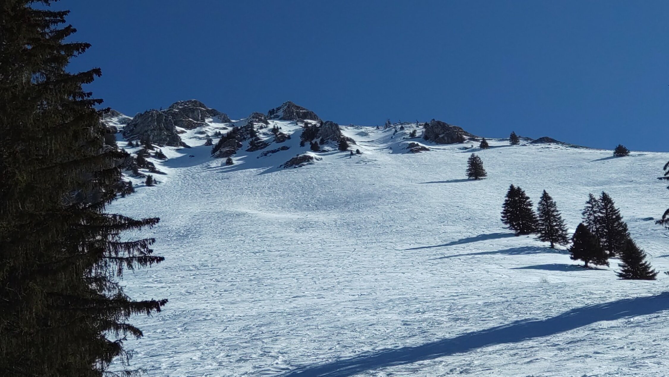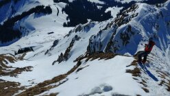 Aufstieg: In der Nordseite vom Teysachaux tragender Firn. Auf dem Westgrat zum Gipfel gut ausgetretene Spur.