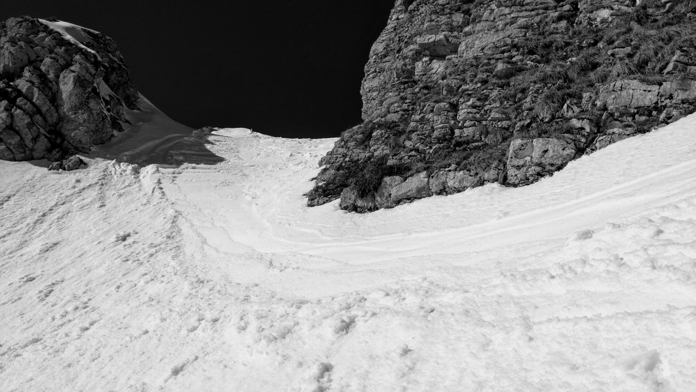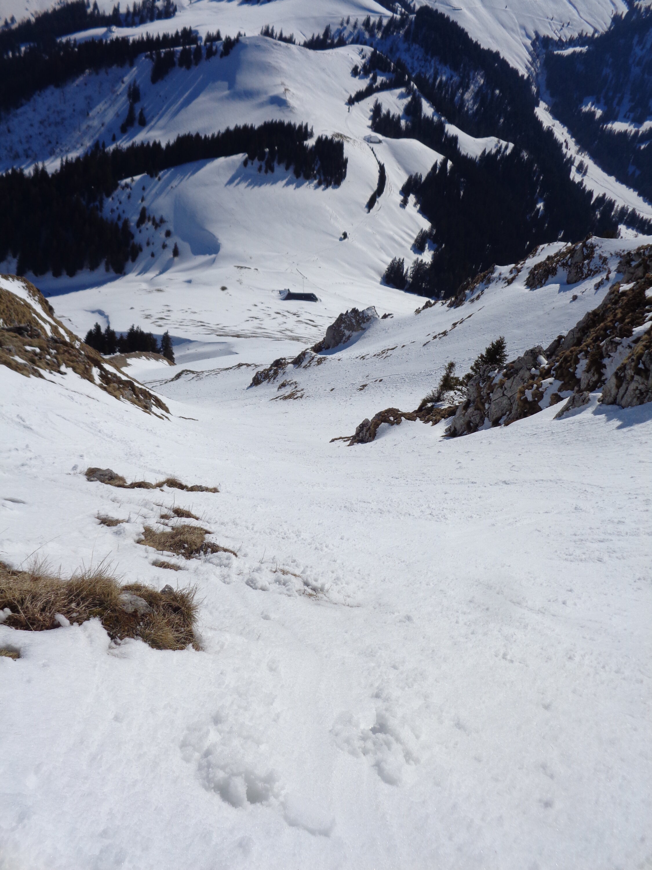 Die Nordflanke ist Pisten ähnlich verfahren, aber immer noch empfehlenswert. Das Südwand-Couloir hatte erst 6 Skispuren drinnen.