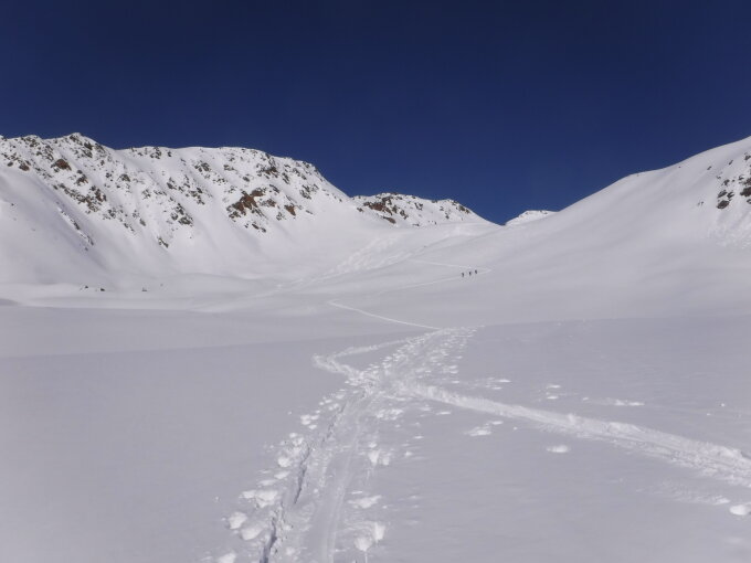 Man kann besser die Tour in umgekehrter Richtung beginnen, wenn die (Lawinen)Verhältnisse nicht sicher sind.