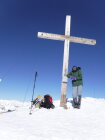Tourenbeginn um 07:45 Uhr bei -15°C unter klarem Himmel. Es wehte oben kalte NO-Bise. Im Aufstieg bis zum Kreuz P 2119 („Auf Melag“) fester abgefahrener Harschdeckel. Bis Zwischenbach (ca. 2230 m) mit 5 cm Pulver Neuschnee obendrauf. Danach nahm die Neuschneeschicht von vorgestern zu bis auf 10 cm.