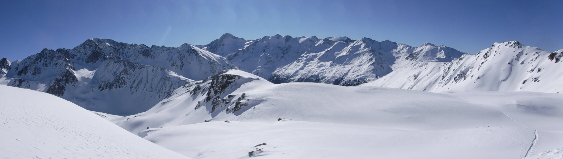Aussichtsberg mit Blick nach Süden zu den 3000ern der Bärenbartkögel, der Weißkugel, Falbanairspitze, zur Mitterloch-Spitze und Tiergartenspitze.