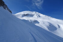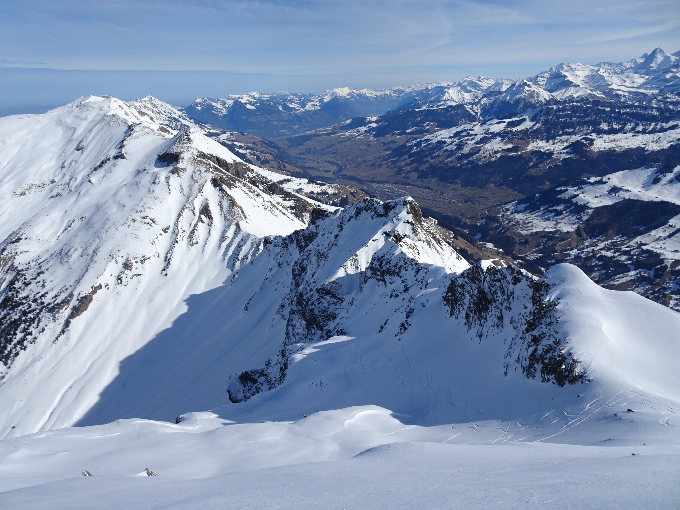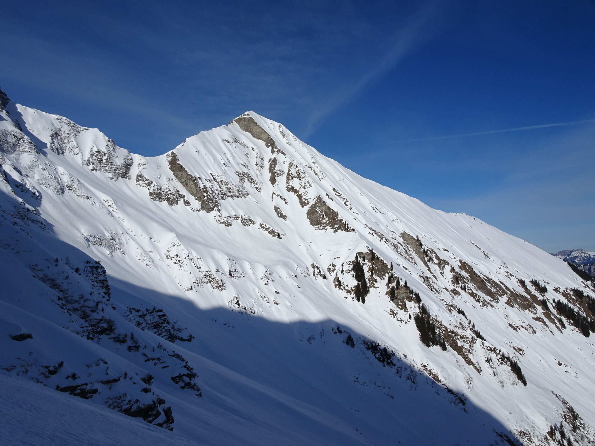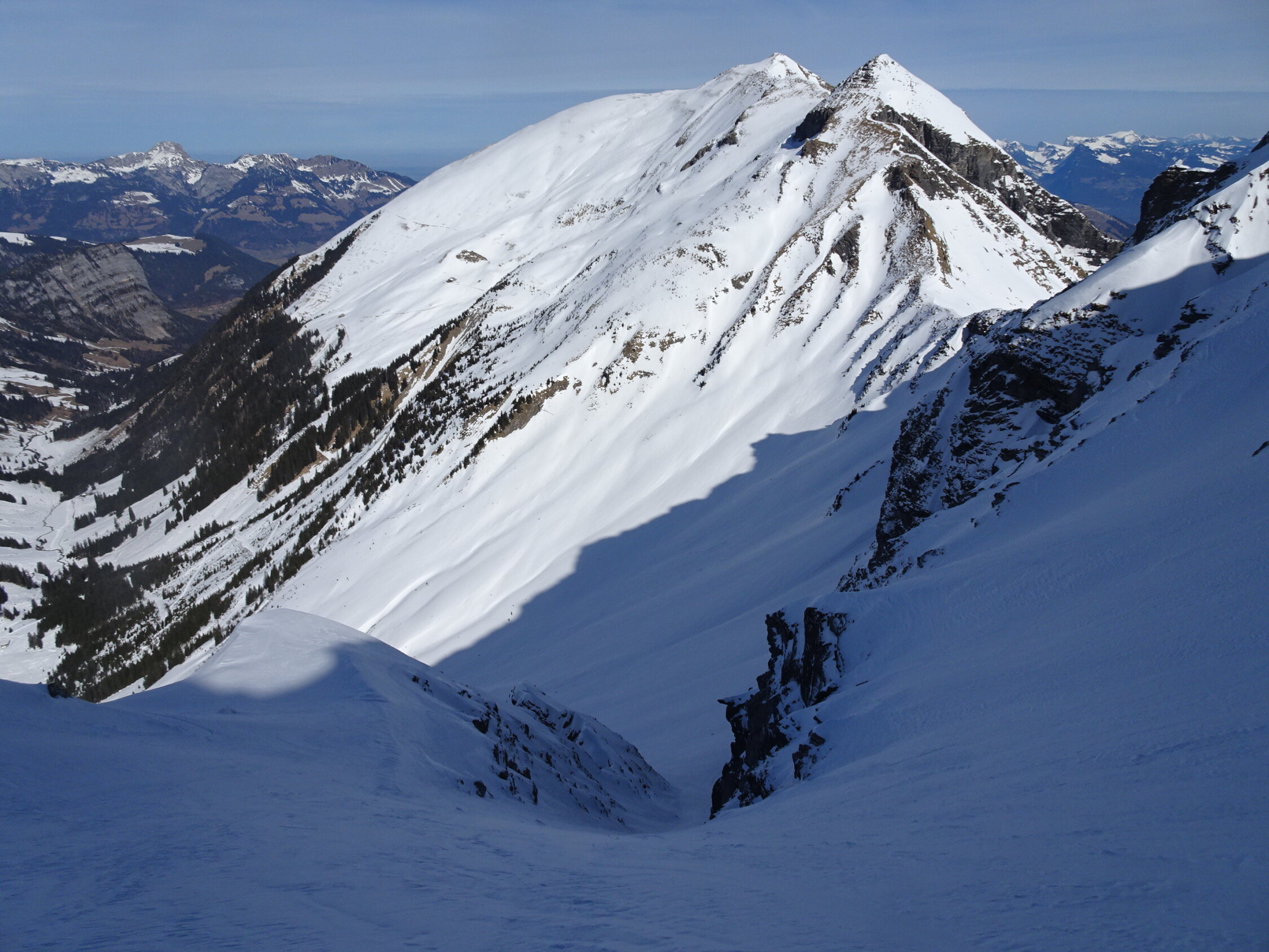 Aufstieg: Verhältnisse überall gut. Spur windgepresst und häufig verweht, Harscheisen bequem. Der Fussaufstieg durchs Couloir beim Wysse Schopf zurzeit problemlos, die Steigeisen liess ich im Sack. Danke an die zwei Damen, welche vorgespurt haben.