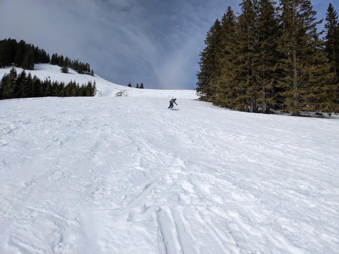 Trotz brauner Flecken noch gut machbar, sogar im Wald. Heute kaum Leute unterwegs.