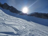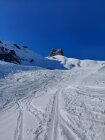 Aufstieg: Strasse ab Tschingel ist noch durchgehend mit Skis begehbar. Ab Griesalp bis auf den Gipfel hat es gute Aufstiegsspuren, meistens hat es zwei Spuren parallel. Durch die Sonneneinstrahlung werden sie aber an vielen Stellen eisig. Wir haben die Harscheisen nicht gebraucht.