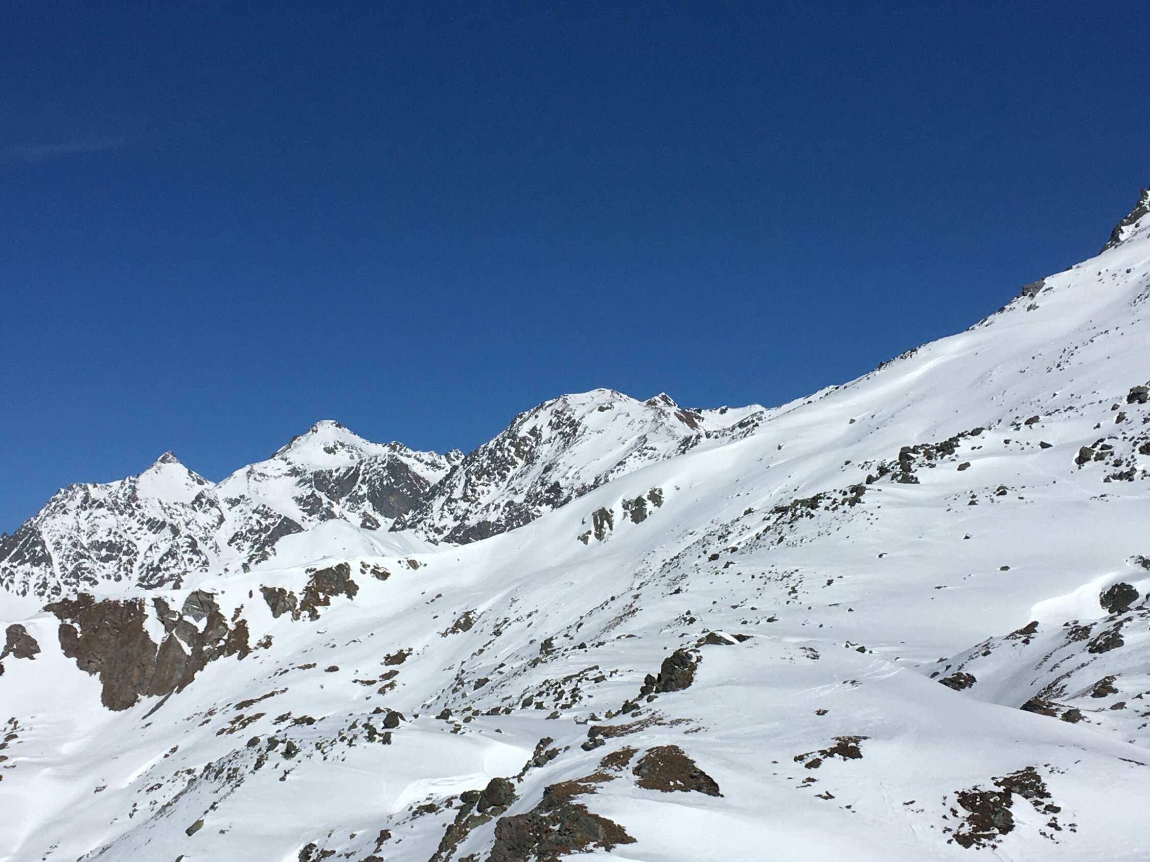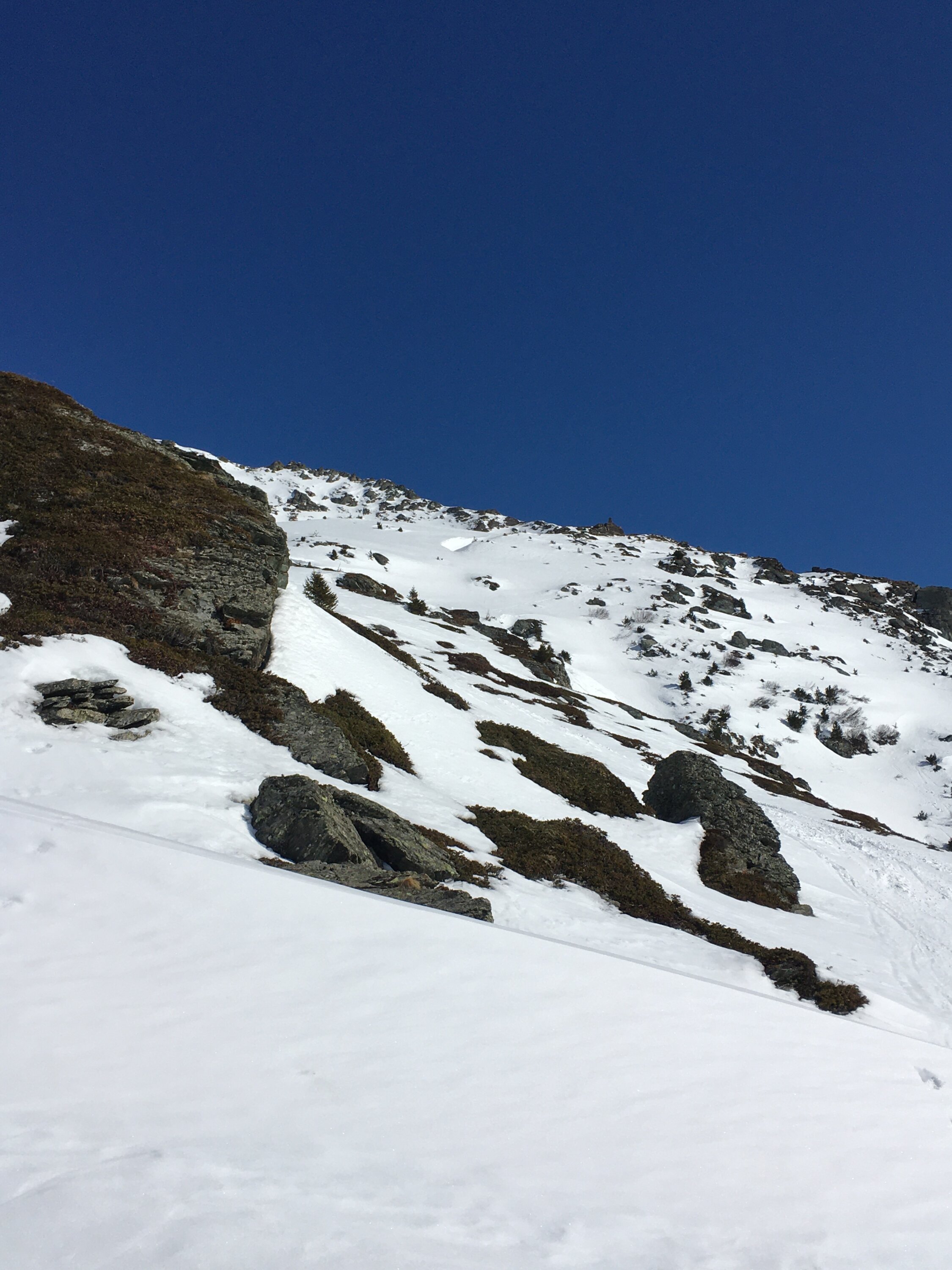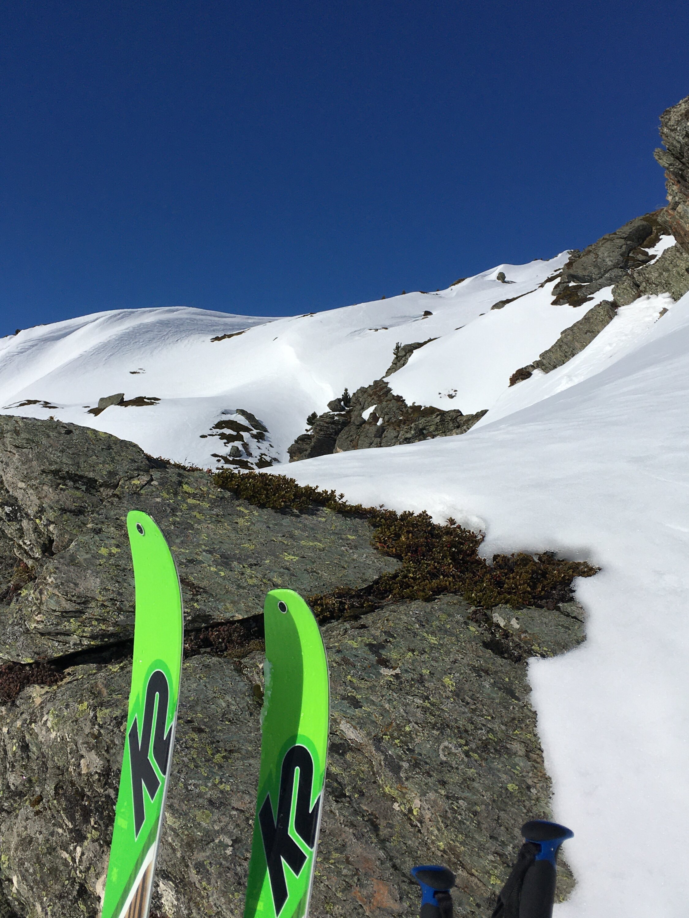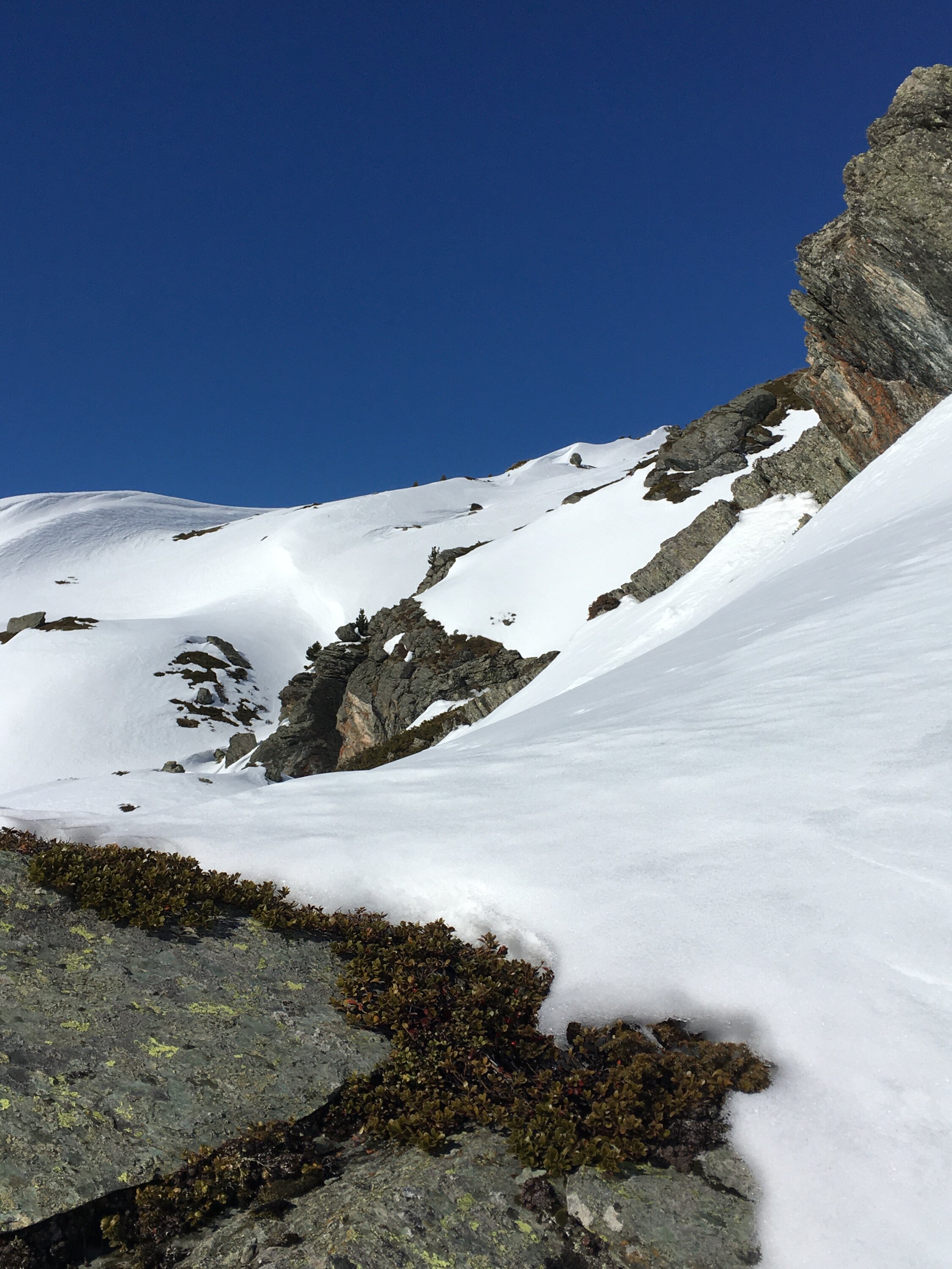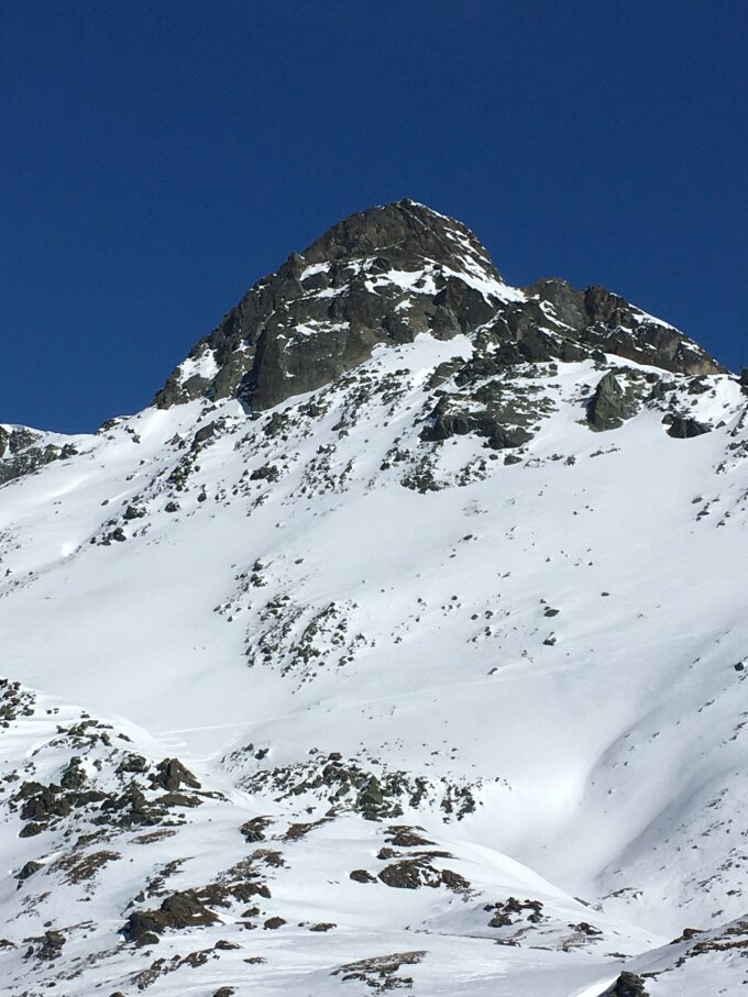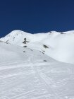 Start 8.45 Uhr grosser Parkplatz Bivio, CHF 5.00, minus 4 Grad, windstill. Perfekte Spur bis Gipfel. Nach der ersten Steilstufe bin ich der schönen Spur auf der rechten Seite im Schatten gefolgt, hier noch Pulverschnee. Weiter oben Sonne und harte Spur, Harscheisen empfehlenswert. Anfahrt im oberen Bereich Pulverschnee, dann perfekter tragender weicher Sulzschnee, ein Genuss. Das Gelände ist sehr breit und es gibt zahlreiche Varianten für steile oder weniger steile Abfahrt. Bin um 14 Uhr abgefahren, war sehr gut, einige Stellen im unteren Bereich nicht mehr tragend. Sehr viel Schnee am Berg.