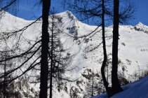 Von Kasern Vom Parkplatz in Kasern im Ahrntal kurz hinunter zur Brücke und über den Laschebener Wald. Diesen aufwärts queren und hinein in die Pförra. DiePförra ziet sich im Schatten der Rotschneide hinauf bis zum Schidepot. Nun steil zur Scharte und kurz über ausgesetztem Grat zum Gipofel. Abfahrt entlan der Pförra und rechts haltend durch eine Waldschneise , die direkt am Heilig Geist Kirchlein endet.