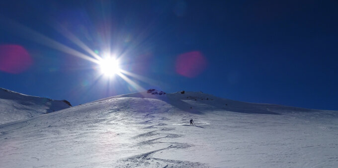 Traumhafte Verhältnisse - die Aufstiegsspur ist wie eine Piste aber gut begehbar und griffig. Bei der Abfahrt haben wir oben wunderschönen Pulverschnee und ab zirka 1300 müM gut fahrbaren Sulz angetroffen.