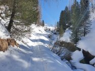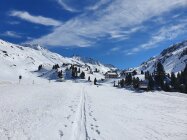 Start bei der Talstation der Pischabahn (Busverkehr ab Davos Dorf; Fr. 5-- retour). Gemütlich am Bach entlang bis Tschuggen (20 Min.). Dann auf der breitgetrampelten Flüelastrasse bis kurz vor P2206 beim Rossboden. Gute Spuren hoch und mit den Skis bis direkt auf dem Jörihorn.