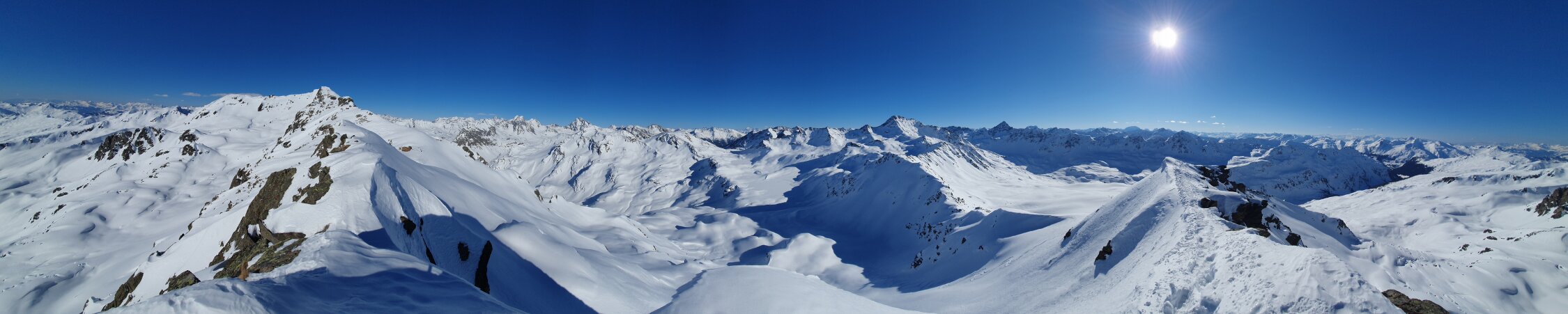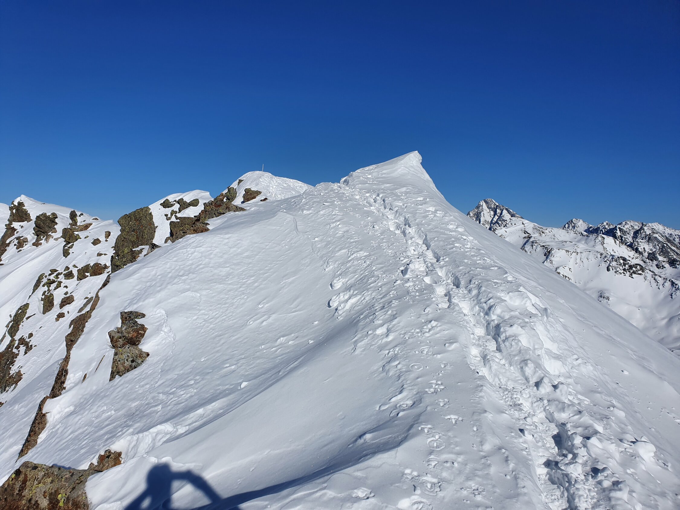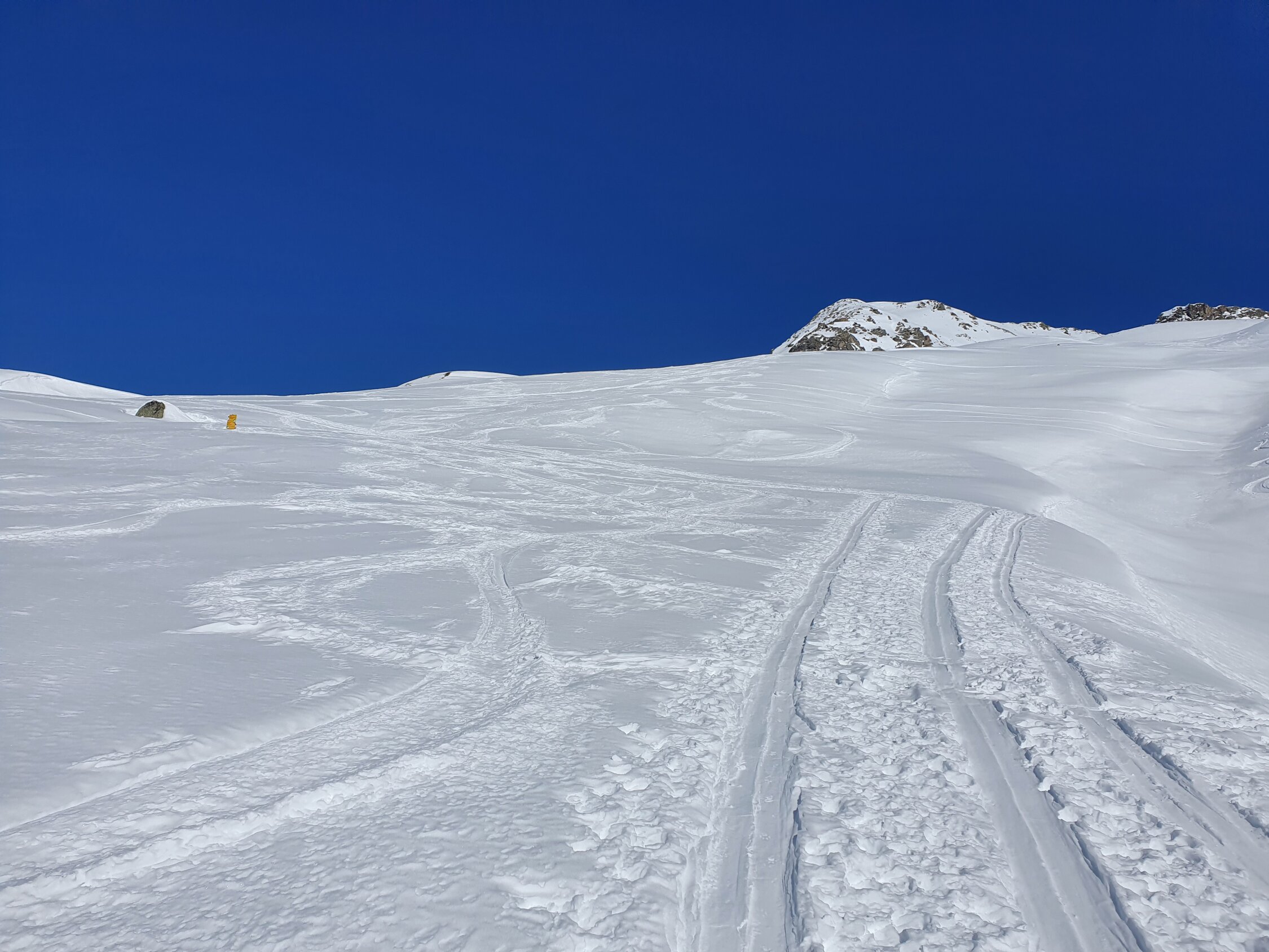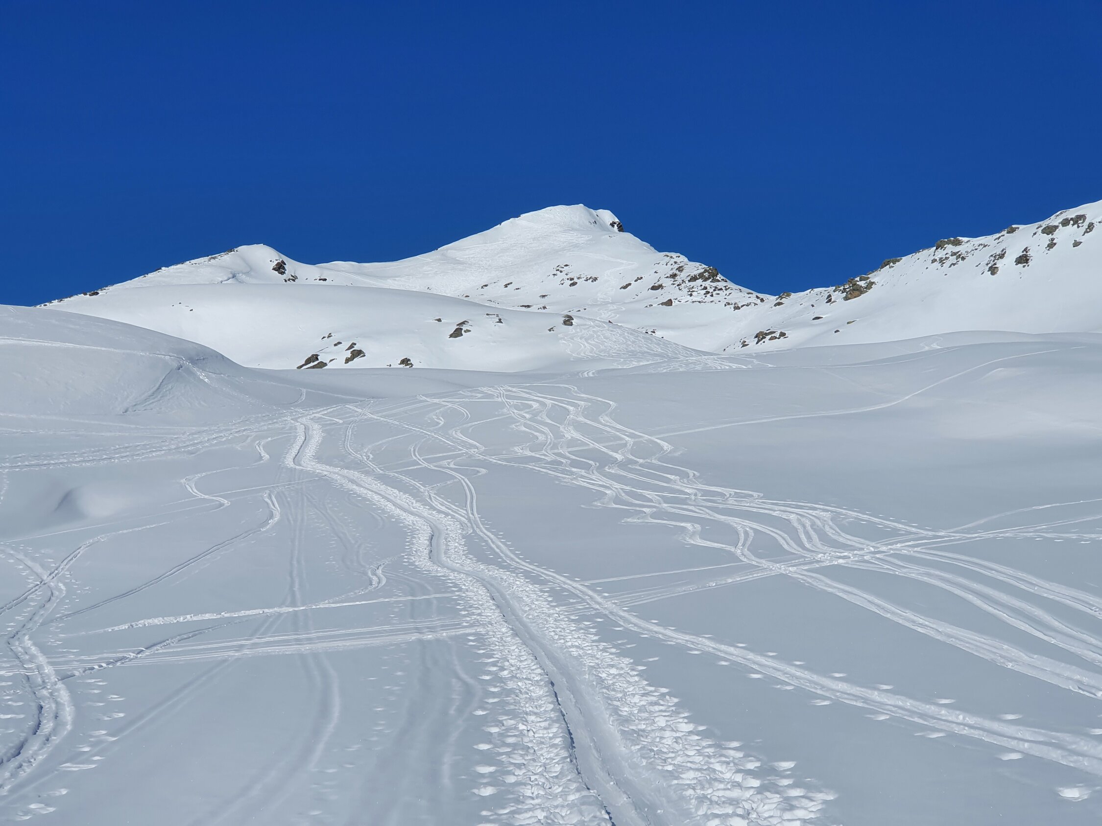 Ich bin direkt vom Gipfel nach Osten ins Jörital abgefahren. Die ersten 300hm leider Bruchharsch, aber ab P2577 dann zum Glück Pulver bis zum Berghaus Vereina. Danach guter Weg bis Monbiel.