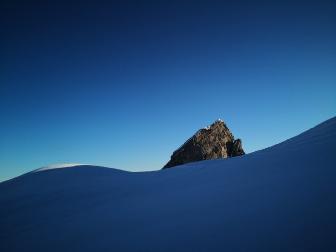 Zuerst auf den Rossstock anschl. Rübergequert zur Rossstock Lücke unter dem Fulen durch zum Chaiserstock. Immer noch viel Pulver in den Nord und Ostseitigen Hängen. Sonst Harstdeckel, welcher sich an der Sonne aber gegen Mittag langsam auffirnte.