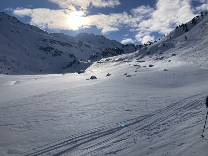 Restliche Abfahrt auf Passstrasse (genügend Schnee) zurück zum Ausgangspunkt.