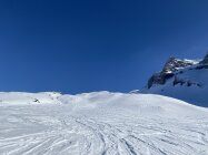 Dreiteilig: oben wunderbarer Pulverschnee, teilweise gepresst. Vor allem im Schatten vom Mutteriberg ist der Schnee Spitze.