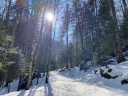 Ganz unten im Tal ist der Schnee eisig und hart.