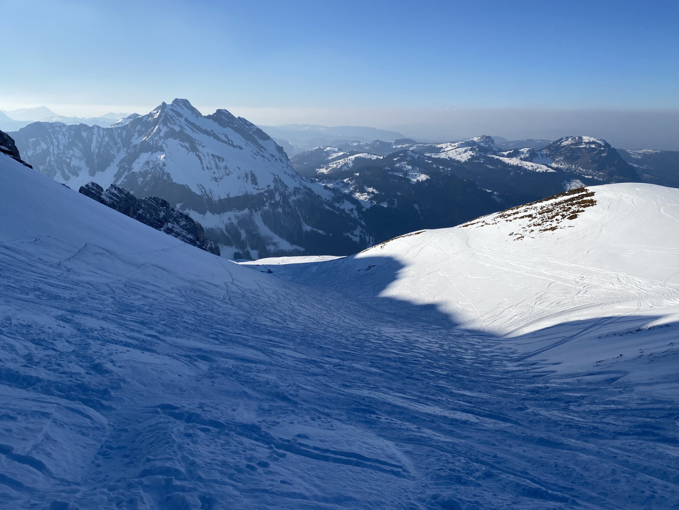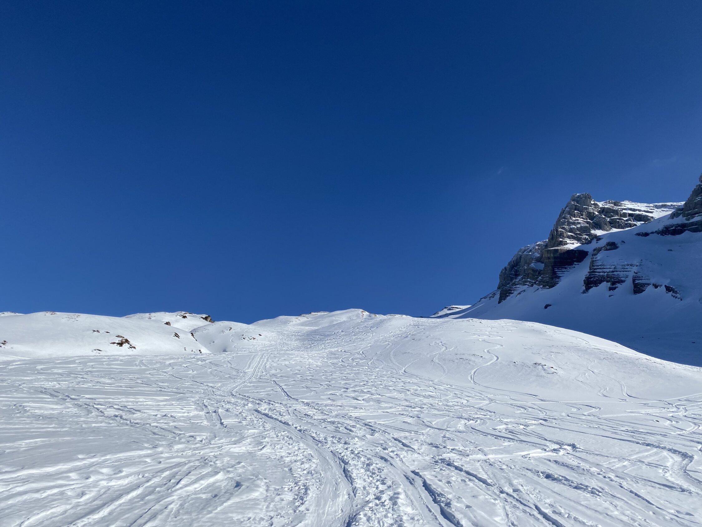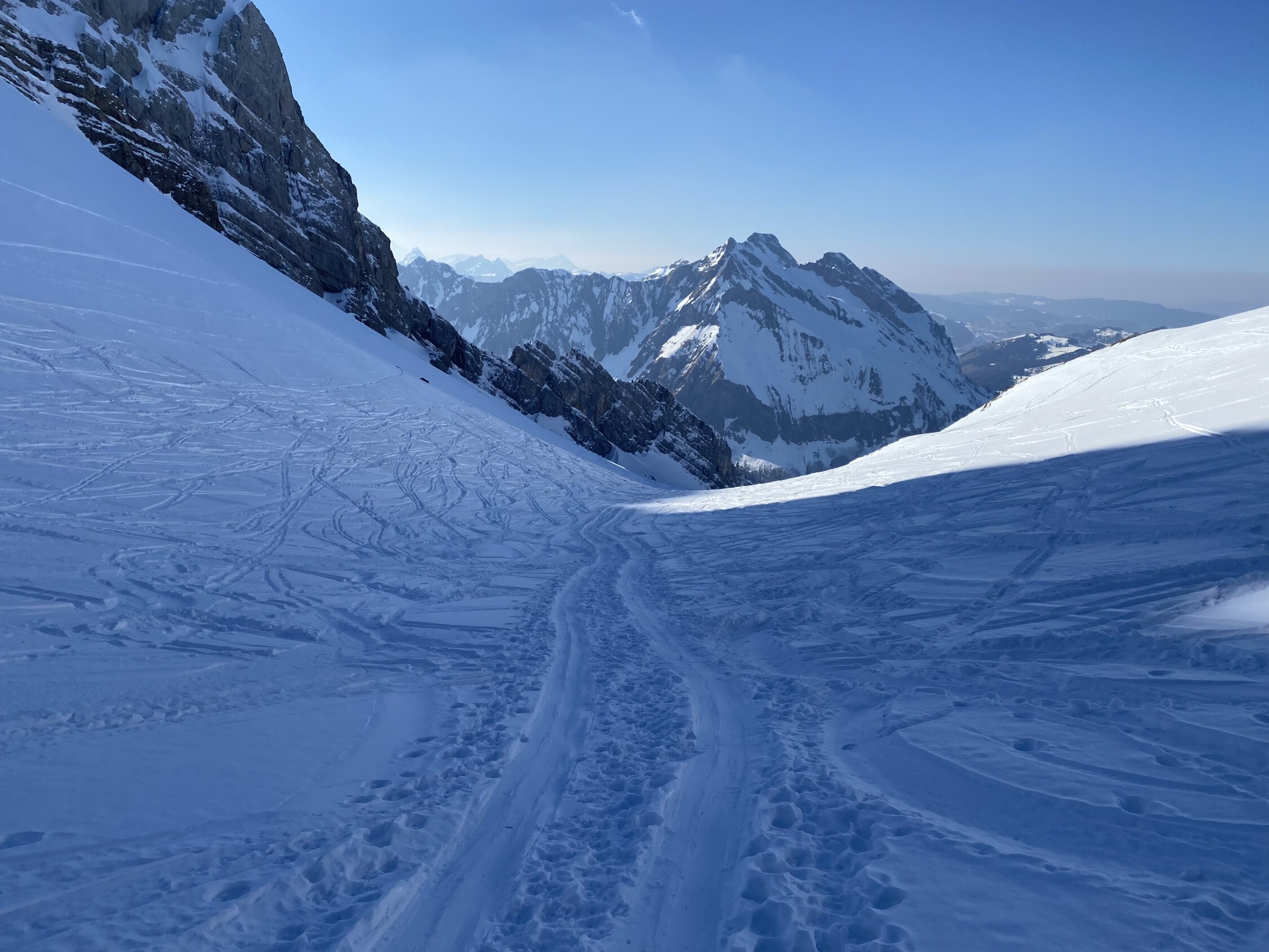 In der Mitte wird der Schnee tiefer, weicher und mit abnehmender Höhe immer feuchter.