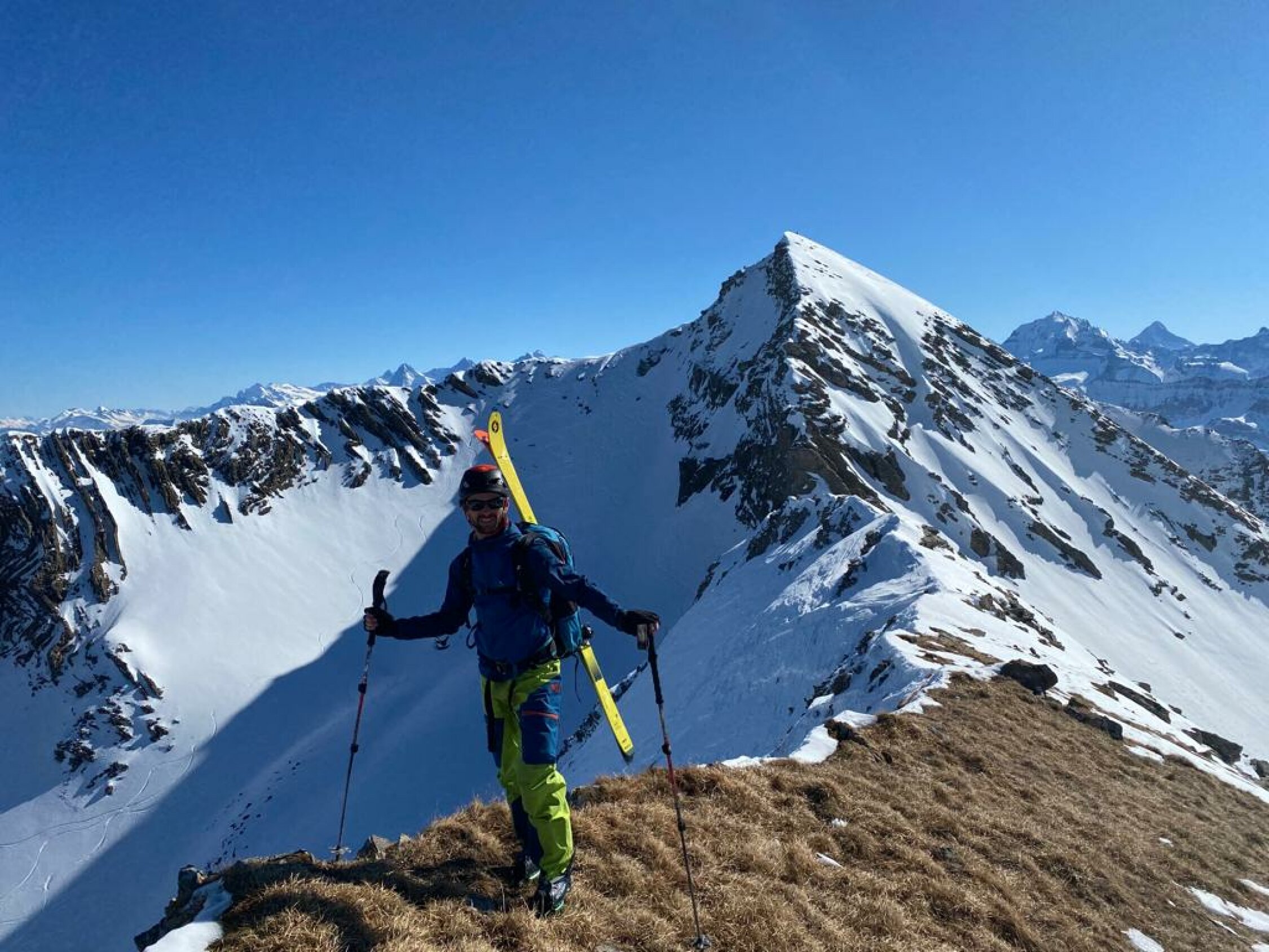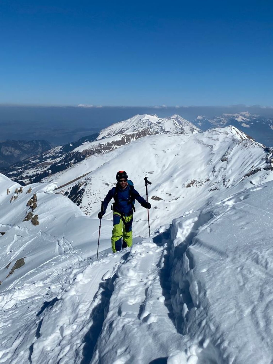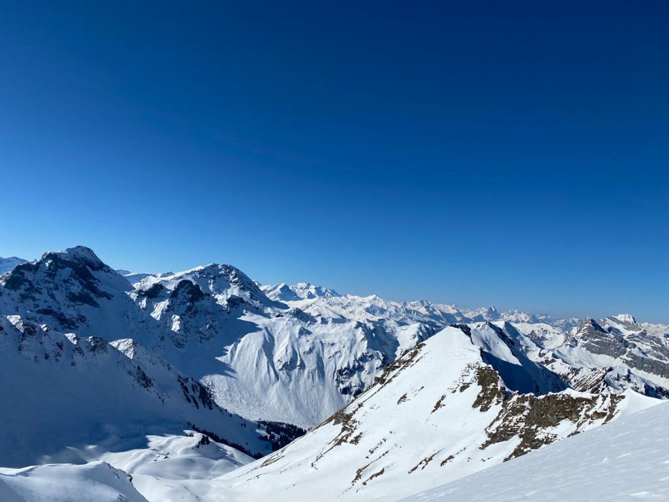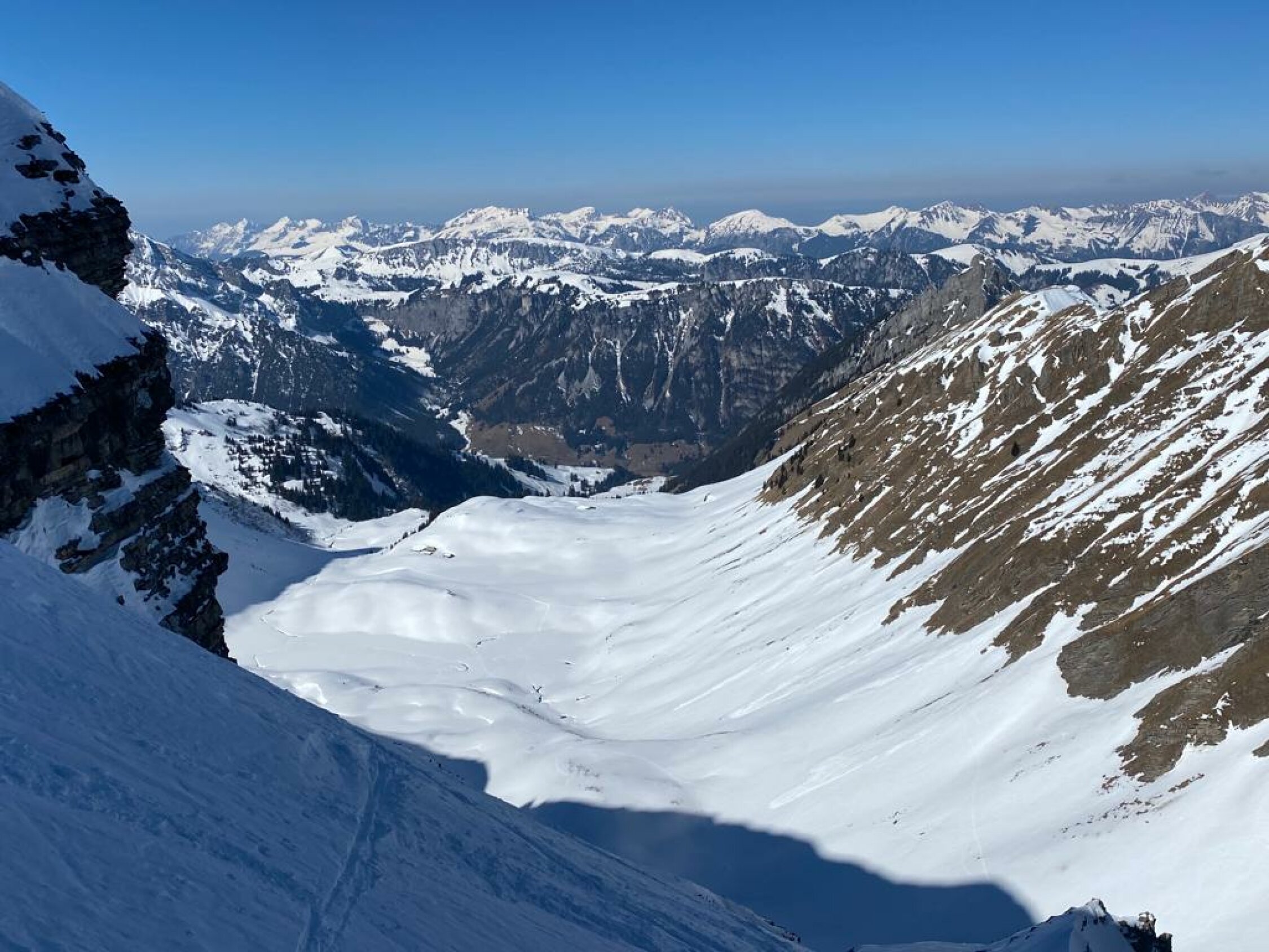 Zuerst auf Schattige Schibe via S Flanke ( firn tip-top mit Steigeisen) - Abfahrt N couli bis Bütschi (meisten pulvrig, bissl verfahren) - Wieder Aufstieg N-Flanke Männliflue (gut spur - grat ohne problem) - Abfahrt oben noch hart und alte Spuren (keine Genuss).. dann in kessel mit Schattige Schibe super sulz !
