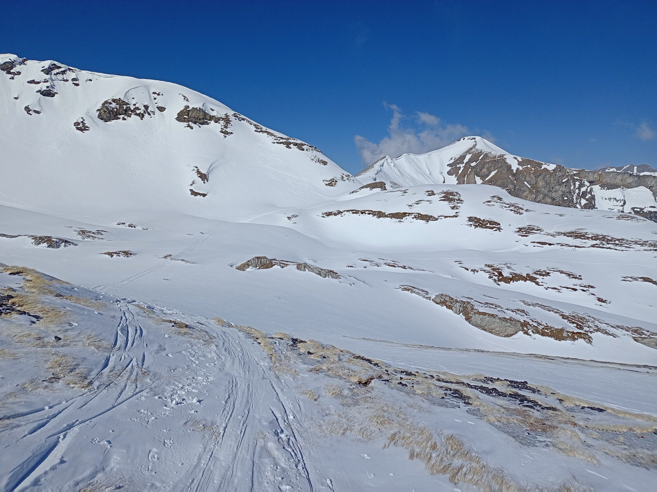 Zur Urnerstaffel abgefahren und zur Bannalper Schonegg. Der Schnee reicht noch für den Aufstieg und die Spur war griffig und ohne Harscheisen begehbar. Übergang kurz abfahren und dann weiter auf guter Spur zum Rotgrätli. Kurze Abfahrt mit den Fellen und dann alles bis auf den Wissigstock gut begehbar.
