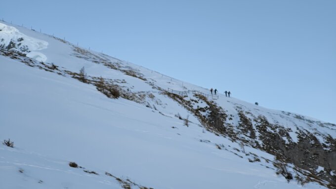 Aufstieg vom Fistengrat zum Gemsfairenstock: Wenig Schnee, mehrere kurze Tragestellen, beispielsweise beim Rund Loch sowie bei der Engstelle bei "Ober Sulzbalm". Spur mehrheitlich gut griffig. Würde man diesen Teil auch abfahren, würde ich ein "Machbar" vergeben.
