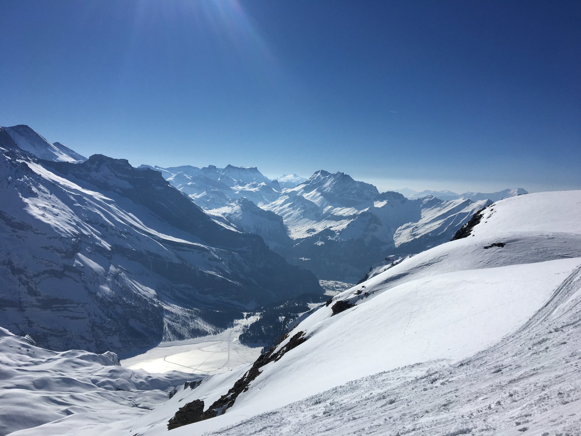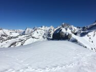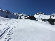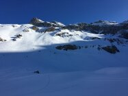 Ziemlich alle Hänge auf der Aufstiegsseite sind befahren worden - zwischendrin hats aber noch Platz - v.A. oberhalb von Dünde-Mittelberg. Schnee ist meist pulvrig.