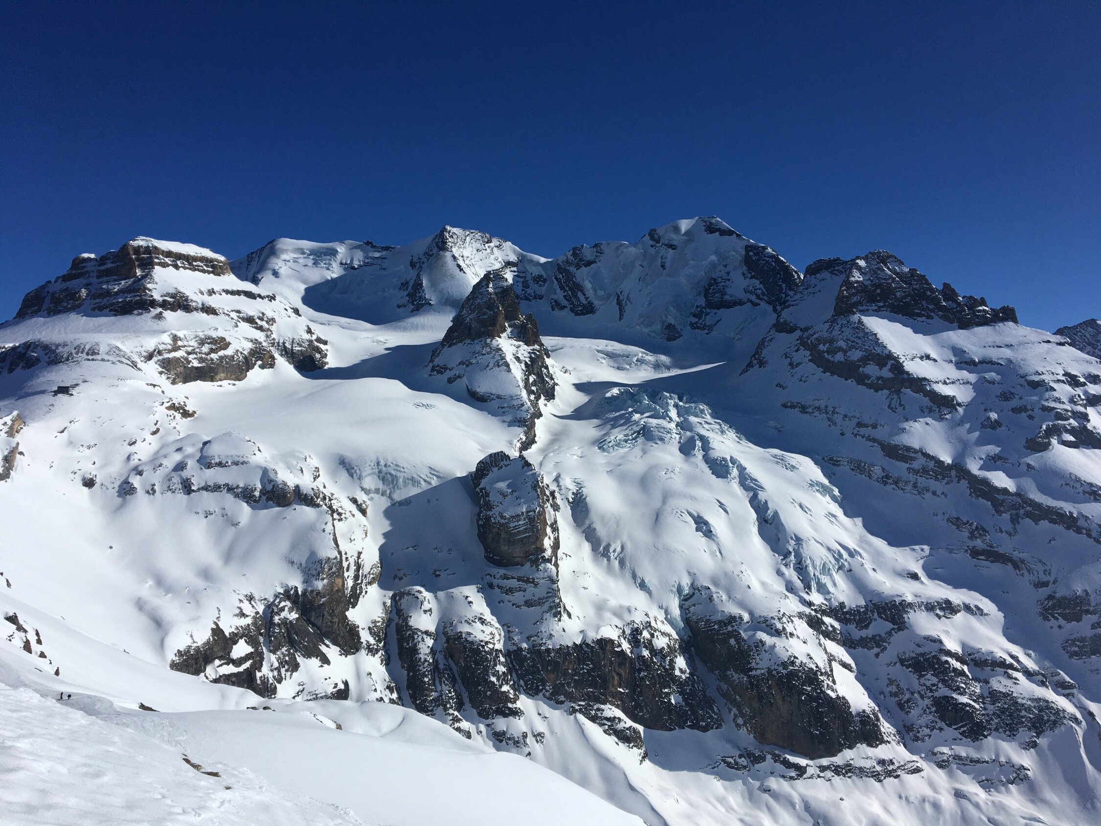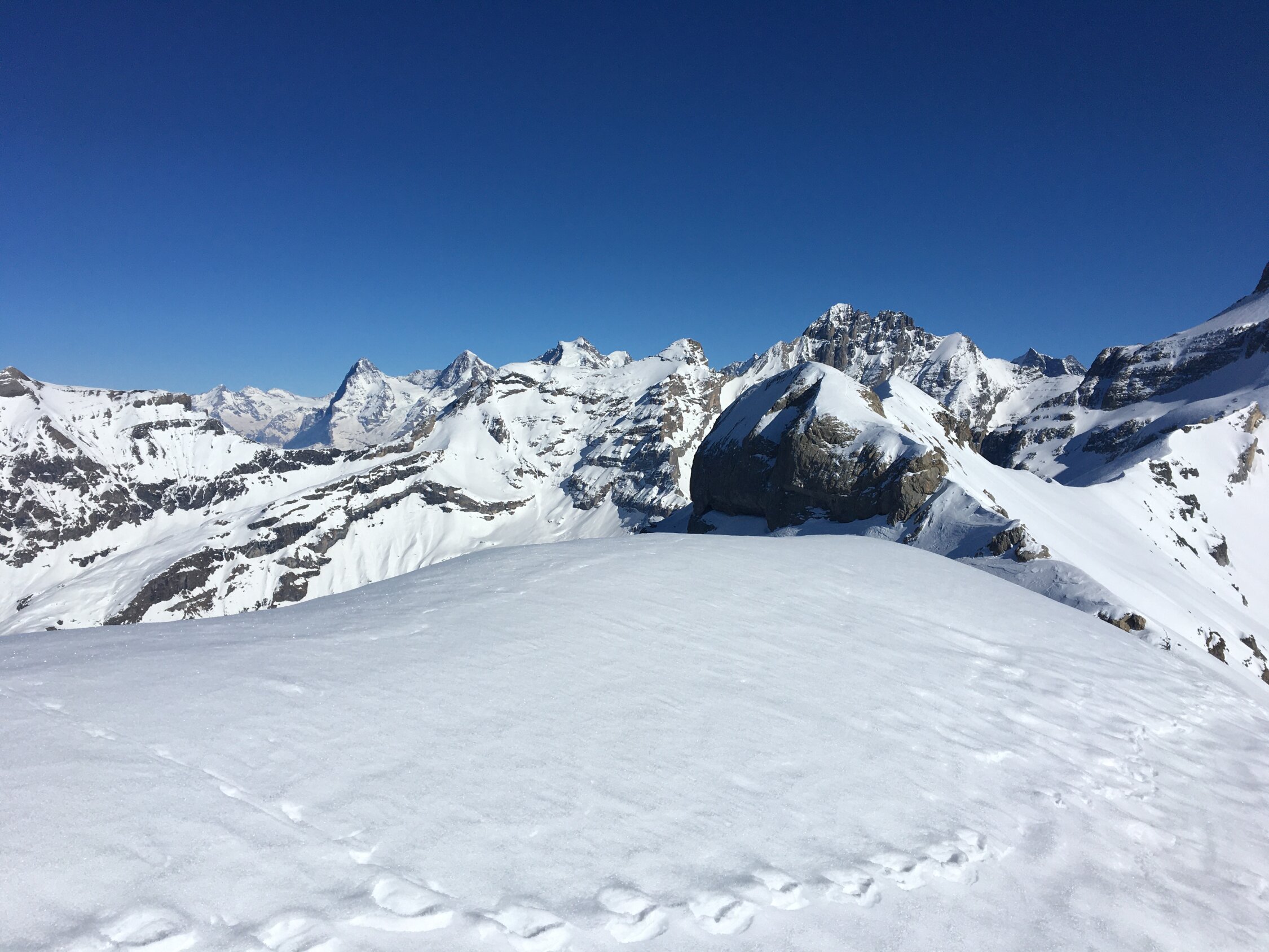 Von Obere Dündenalp Hütte aus nochmal aufgefellt und bis Dündengrat (ca 2200) aufgestiegen. Kurz vor dem Grat etwas schwierig weil vereiste Spur und die Felle haben keinen Halt mehr gegeben. Daher etwas unterhalb neue Spur gelegt.