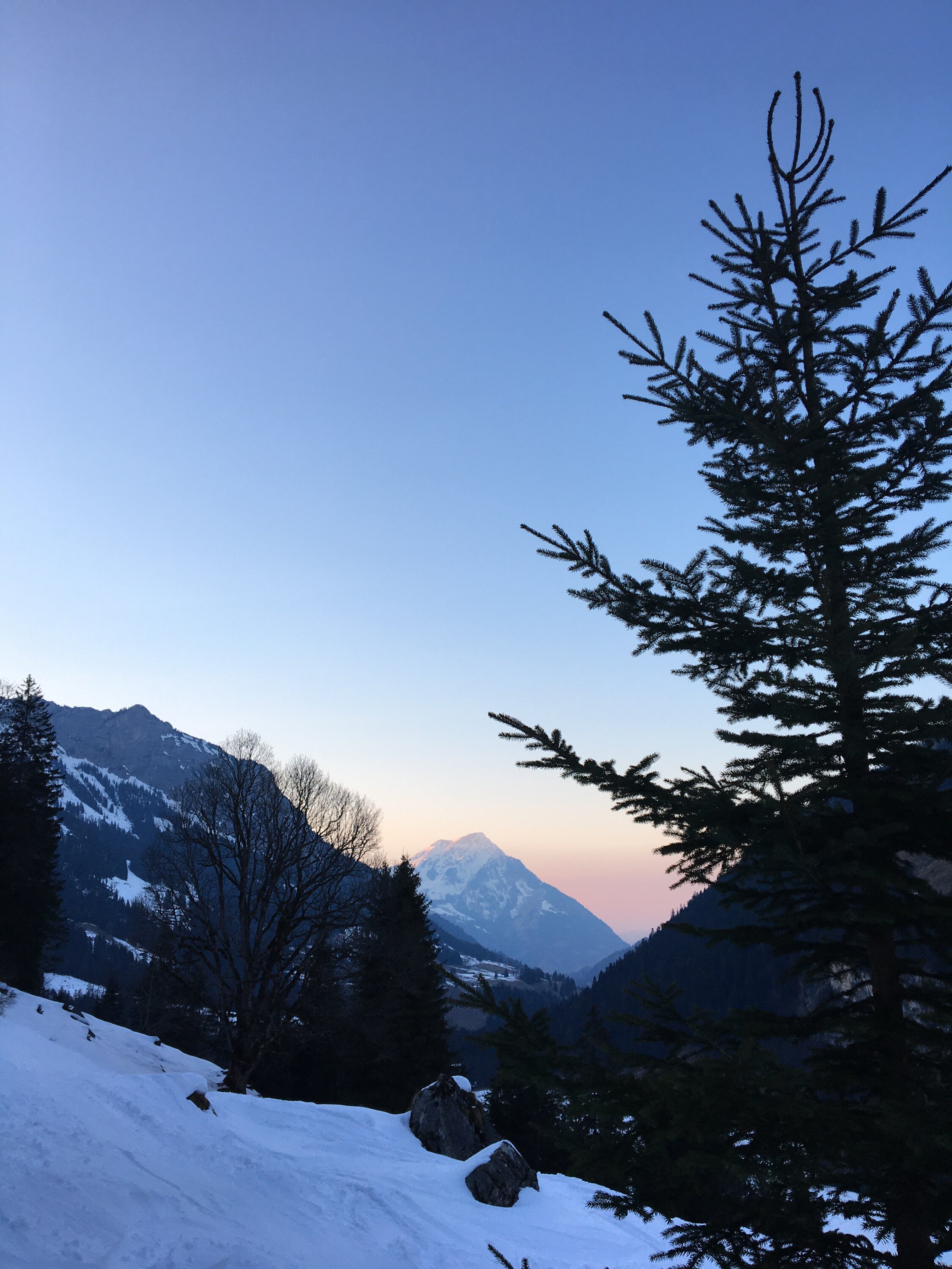 Ab Griesalp teilweise recht zerfahrenes Gelände bis Dünde-Mittelberg. Von dort aus schöne Aufstiegs-Spuren bis zum Gipfel. Teilweise jedoch rutschig weil durch die Sonneneinstrahlung vereiste Spur.