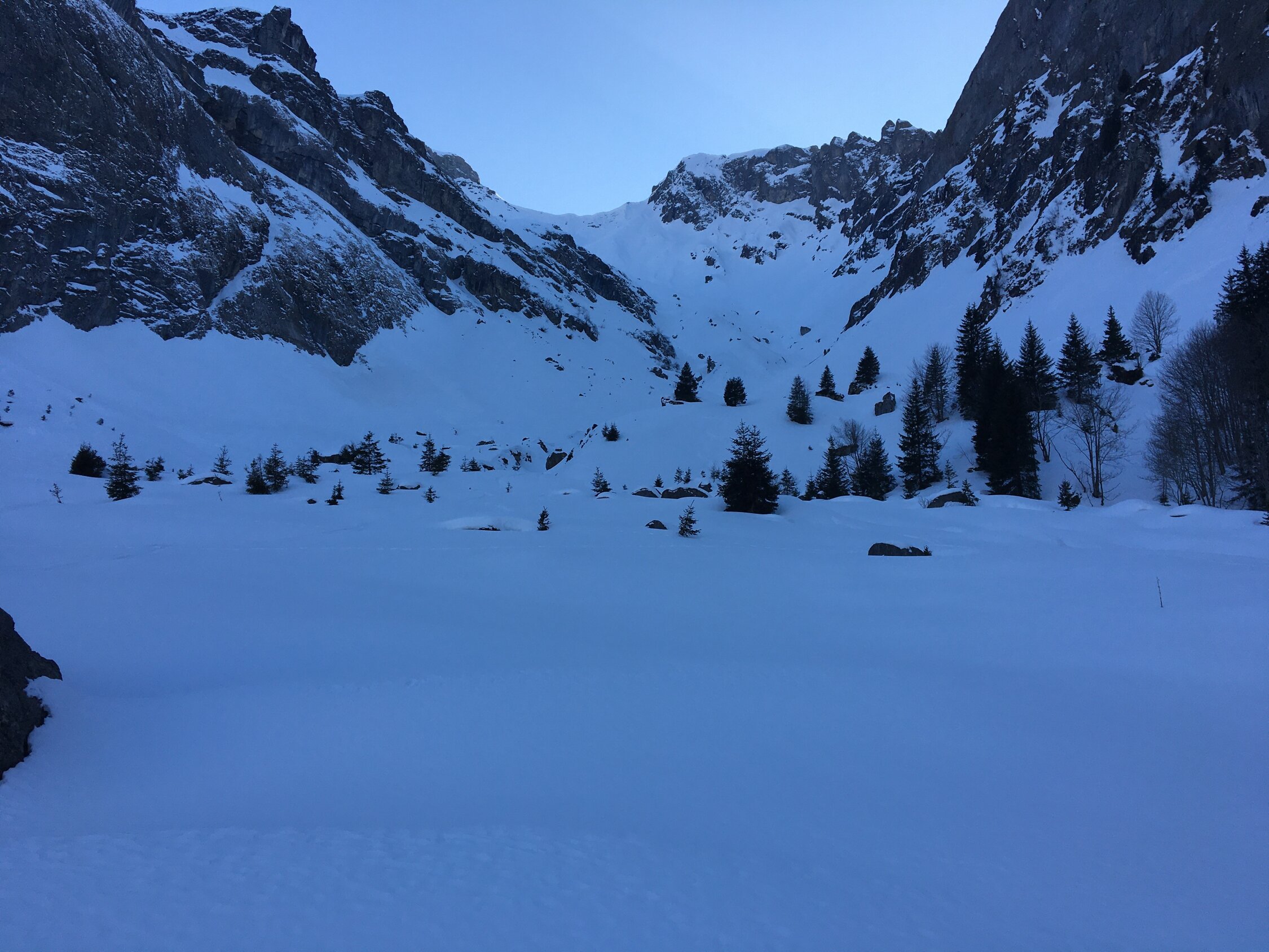 Abfahrt von Dündengrat via Chazenegg und Chüegwindli: