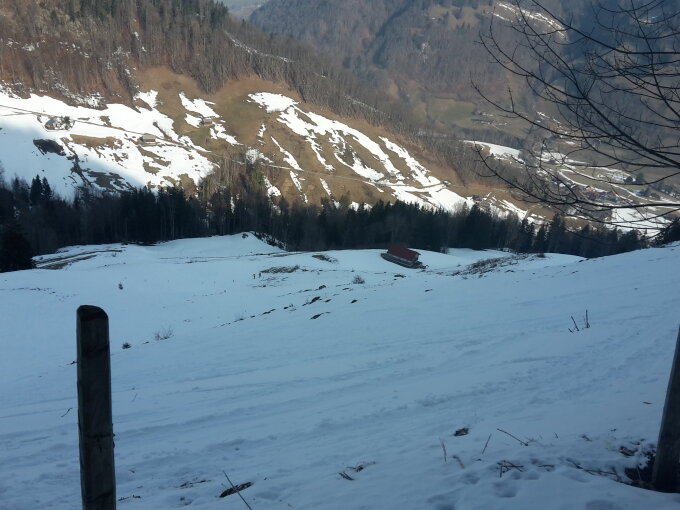 Keine Leute auf der Route angetroffen (nur einen Schneeschuhwanderer bei der Abfahrt im Selunerwald in Shorts und mit 500kg Rucksack...)