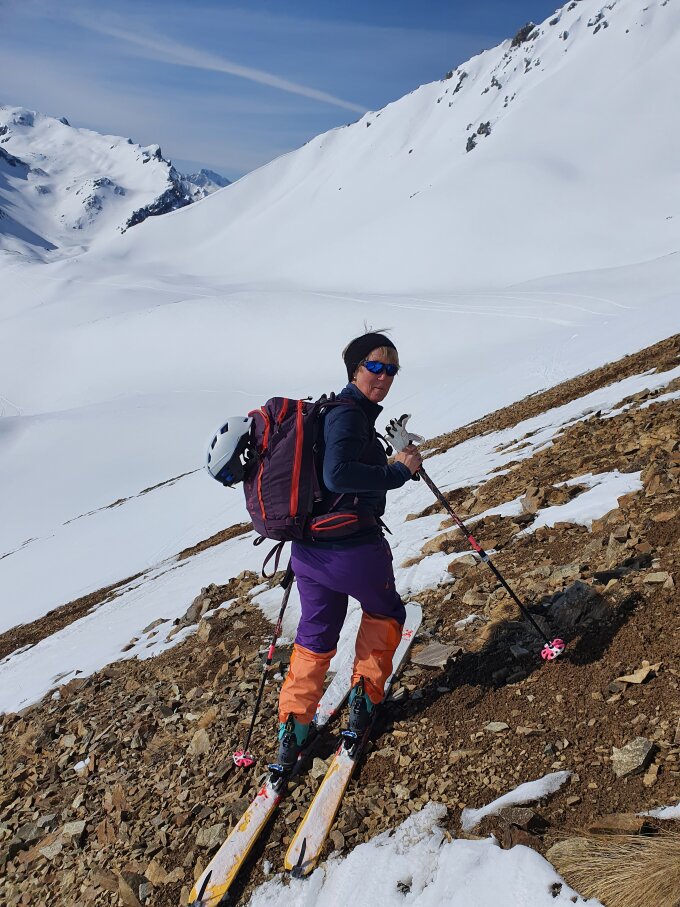 Sehr wenig Schnee auf dieser Route im Aufstieg. Abfahrt sehr hart und zerfahren.