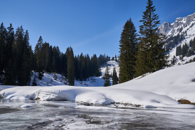 Bleibt die nächsten Tage ähnlich. Die Schneeauflage im Meniggrund wird dünner und dünner.