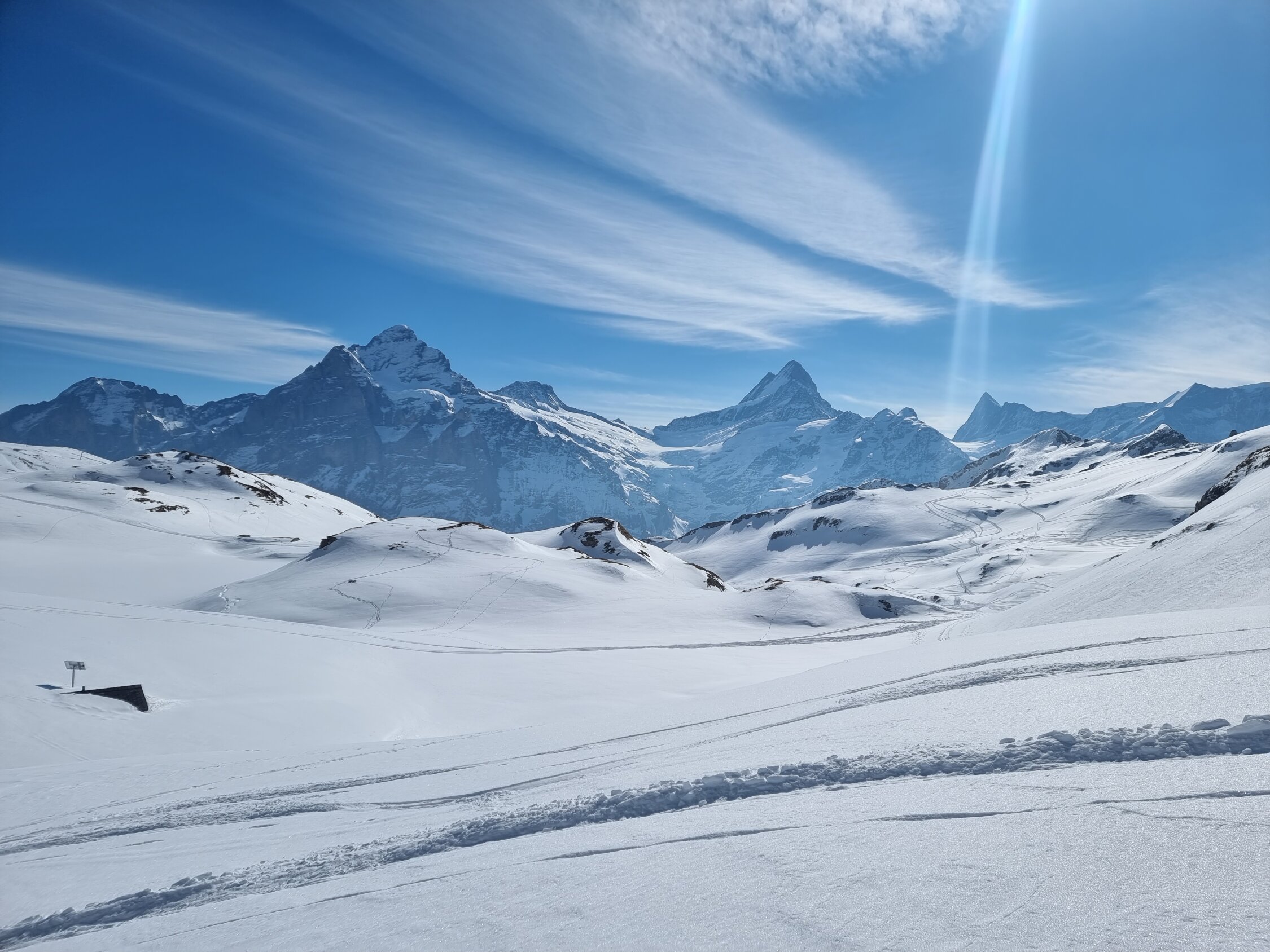 Tip top schöne aufstiegsspur..im gipfelaufschwung harscheisen empfehlenswert..Abfahrt Einstieg in die steile schaute etwas heikel.gefroren..dann feinster powder..talabfahrt nach Grindelwald noch möglich ..Berg und das Panorama einfach Mega.