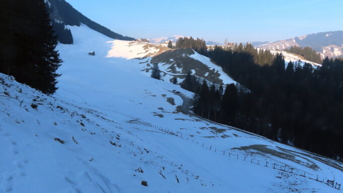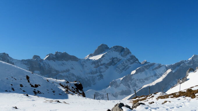 Am PP Erstböhl (bis hierher schwarzgeräumt)konnte ich die Schneeschuhe montieren. Dank der Nordexposition reichte der Schnee noch, um die (geschlossene) Talpiste von der Ebenalp zu erreichen. Hartgefrorene und teils eisige Piste. Ab etwa dem Skilift Gartenalp nahm ich die frisch gewalzte Pulverpiste bis zur Chlus. Von der Chlus bis zum Gipfel gute Spur. Der Wechtengrat ist derzeit einfacher zu begehen als oftmals im späteren Frühjahr.