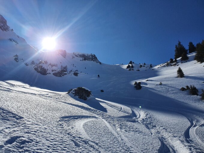 Abfahrt über Höchst, trotz bereits einigen Spuren praktisch überall noch Presspulver oder Sulz gefunden.