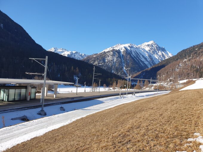 Mit dem Zug hat man von Sagliains nach Klosters Platz dank dem Vereinatunnel 20 Minuten. Ich hatte ohne Tunnel 7 Stunden. ;o)