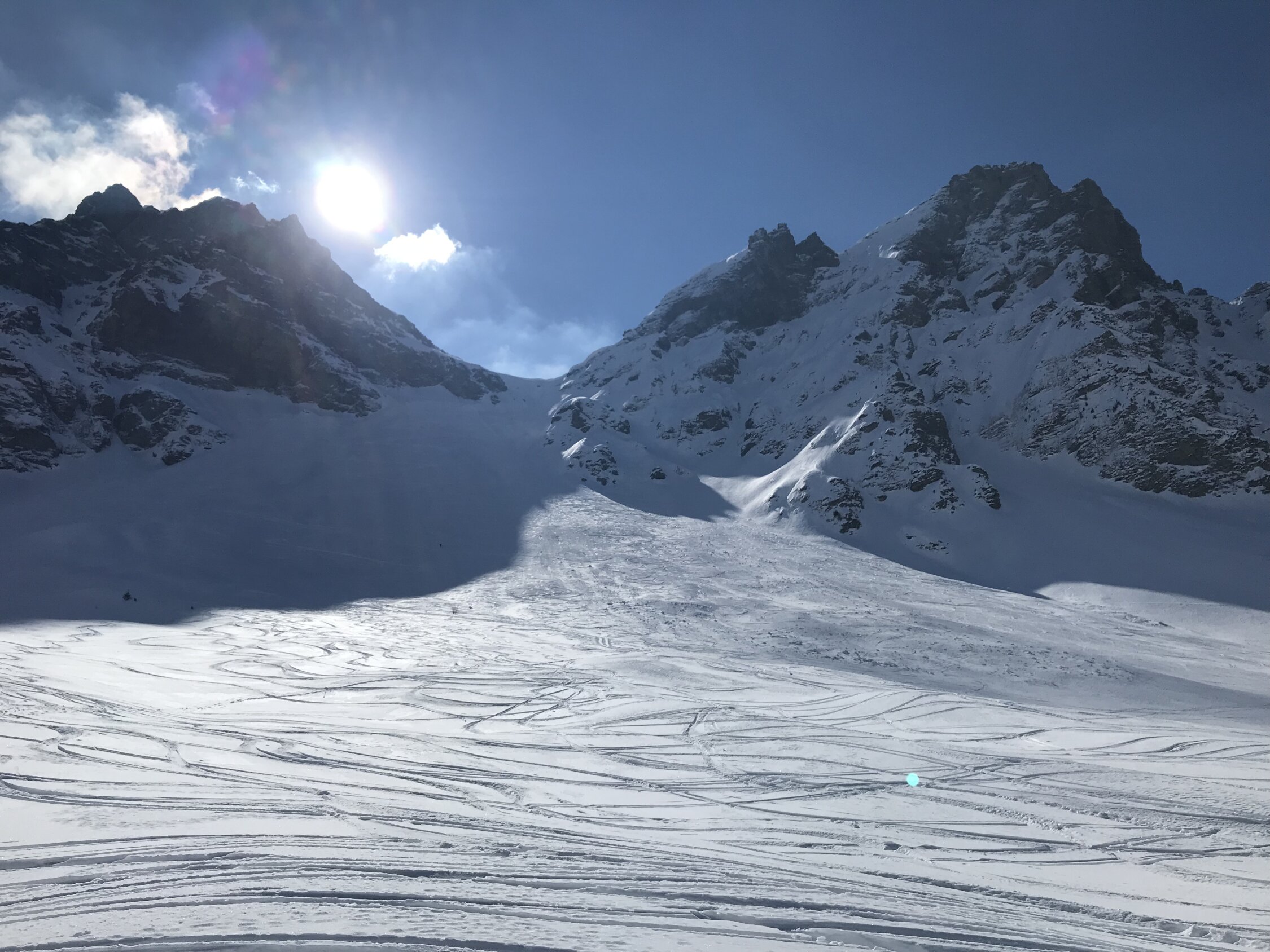 Abfahrt hpts. im Presspulver, im Flachstück zur Chiley tlw. noch netter Pulver.