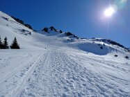 https://www.biel-kinzigag.ch/ für 13.- CHF zwei Gondelfahrten, Skilift für 2.- CHF Einzelfahrt. Dann Abfahrt zum Punkt 1664 und anfellen. Aufstieg bis zum Geissgrätli ohne Harscheisen. Abfahrt in gesetztem Pulver bis auf 1700müM vor der Rindermatt. Weiterer Aufstieg bis kurz vor dem Höch Pfaffen und dann aus zeitlichen und Pulverhang Gründen auf den Grat in Richtung Schwarz Stock aufgestiegen. Hang zum Höch Pfaffen sah problemlos aus und die Abfahrt hätte sich schon aufgesulzt sicher auch gelohnt. Wunderschöne Pulverabfahrt. Dann intressante Abwechslung zwischen Pulver-und Firnabfahrt.