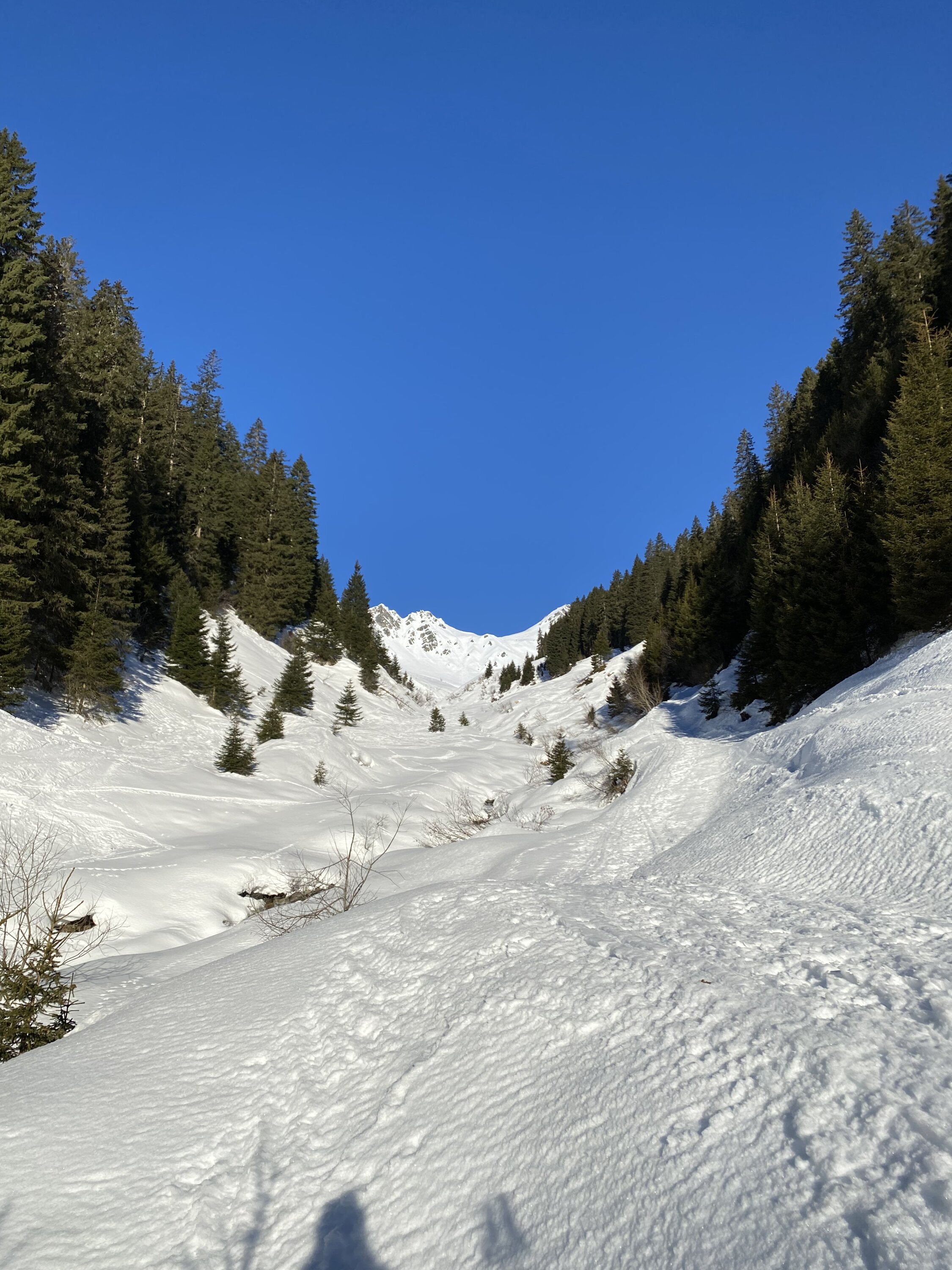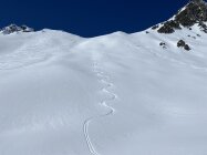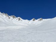 Beste Verhältnisse. Nordost und Nord bieten die Hänge Pulverschnee. Steilere Südwestseite hatte gegen 11 Uhr aufgefirnt. Einsame Tour in herrlichen Bergpanorama und ausreichend Schnne bis zum Ausgangspunkt.