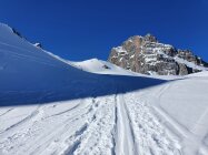 Kurz vor der Furschela da Tschitta erstaunlicherweise keine Spuren zum Piz Val Lunga vorgefunden. Alle Spuren gingen weiter via Pass d'Ela nach Filisur.