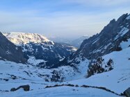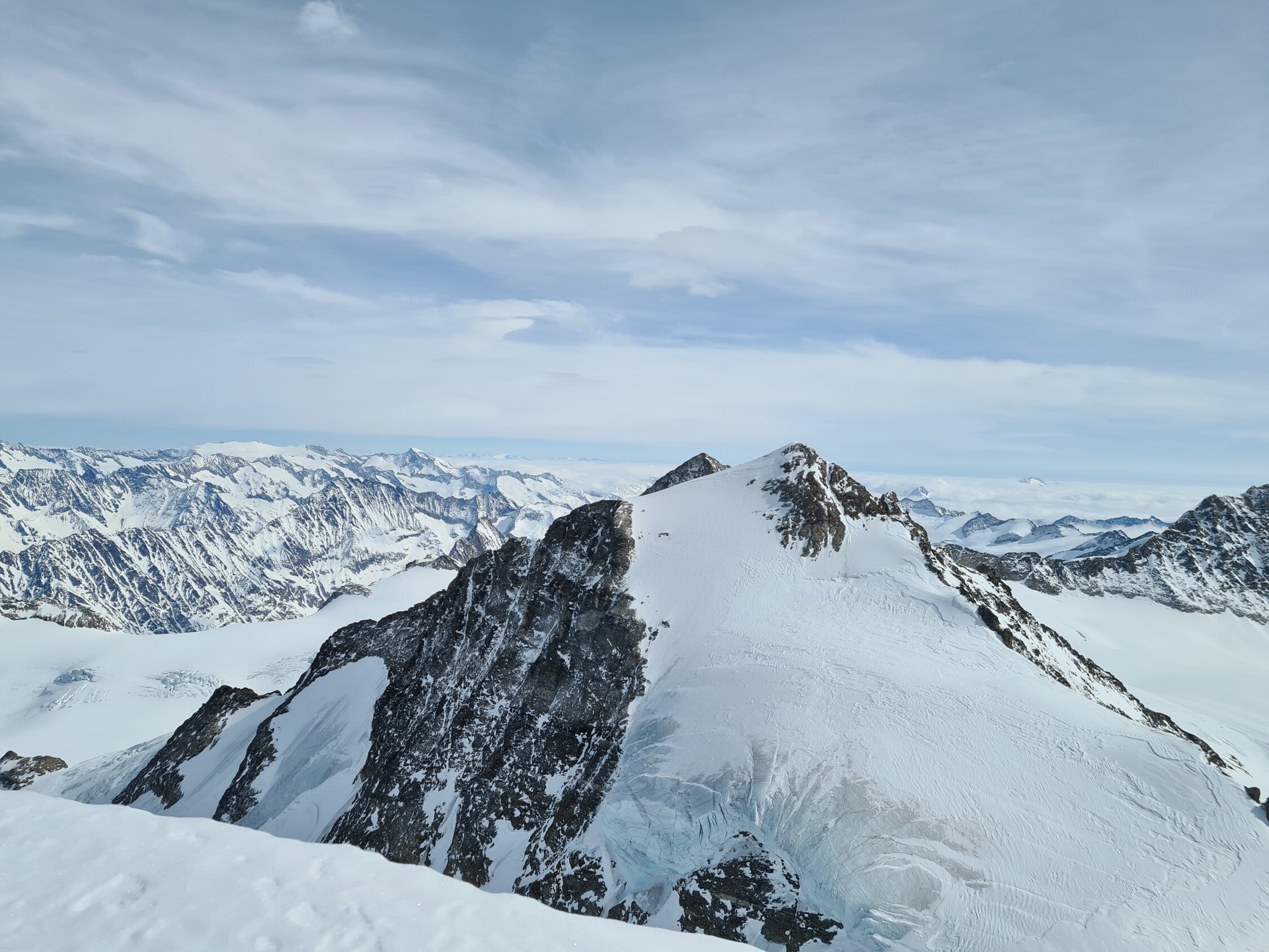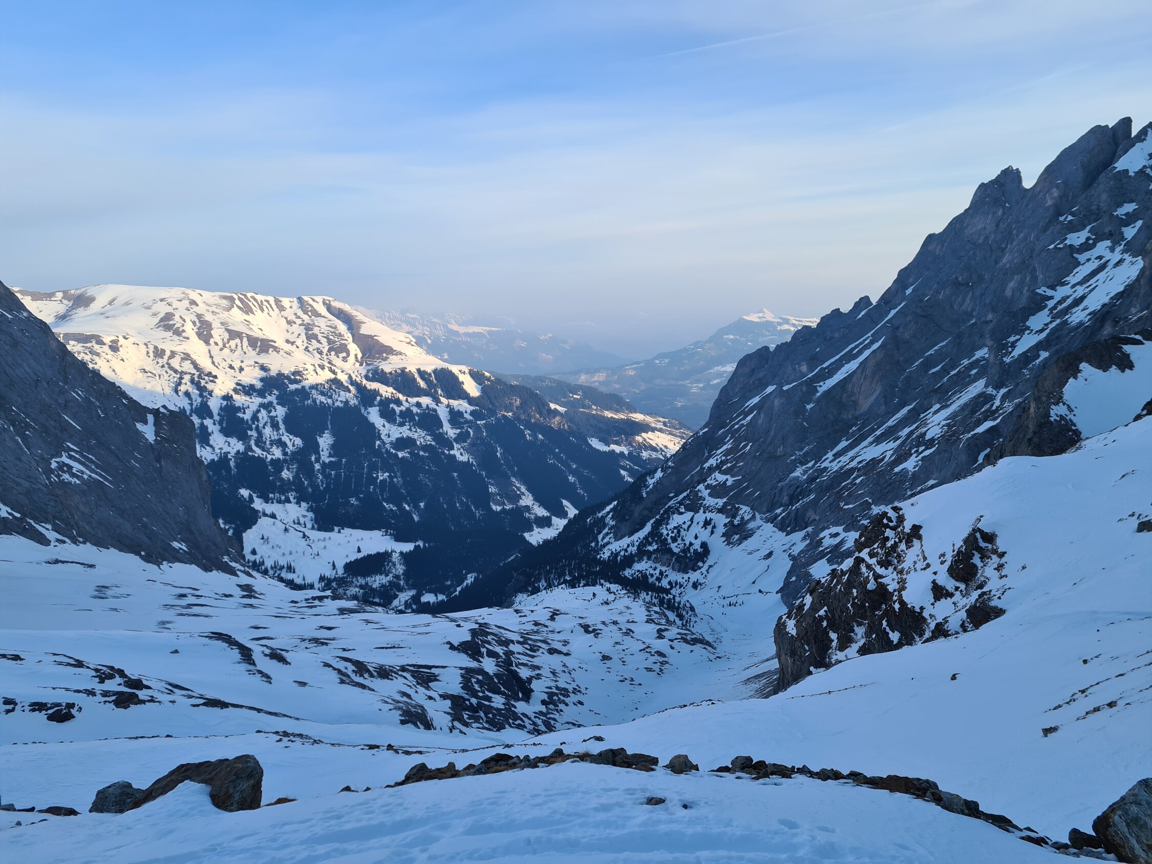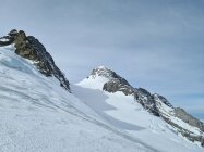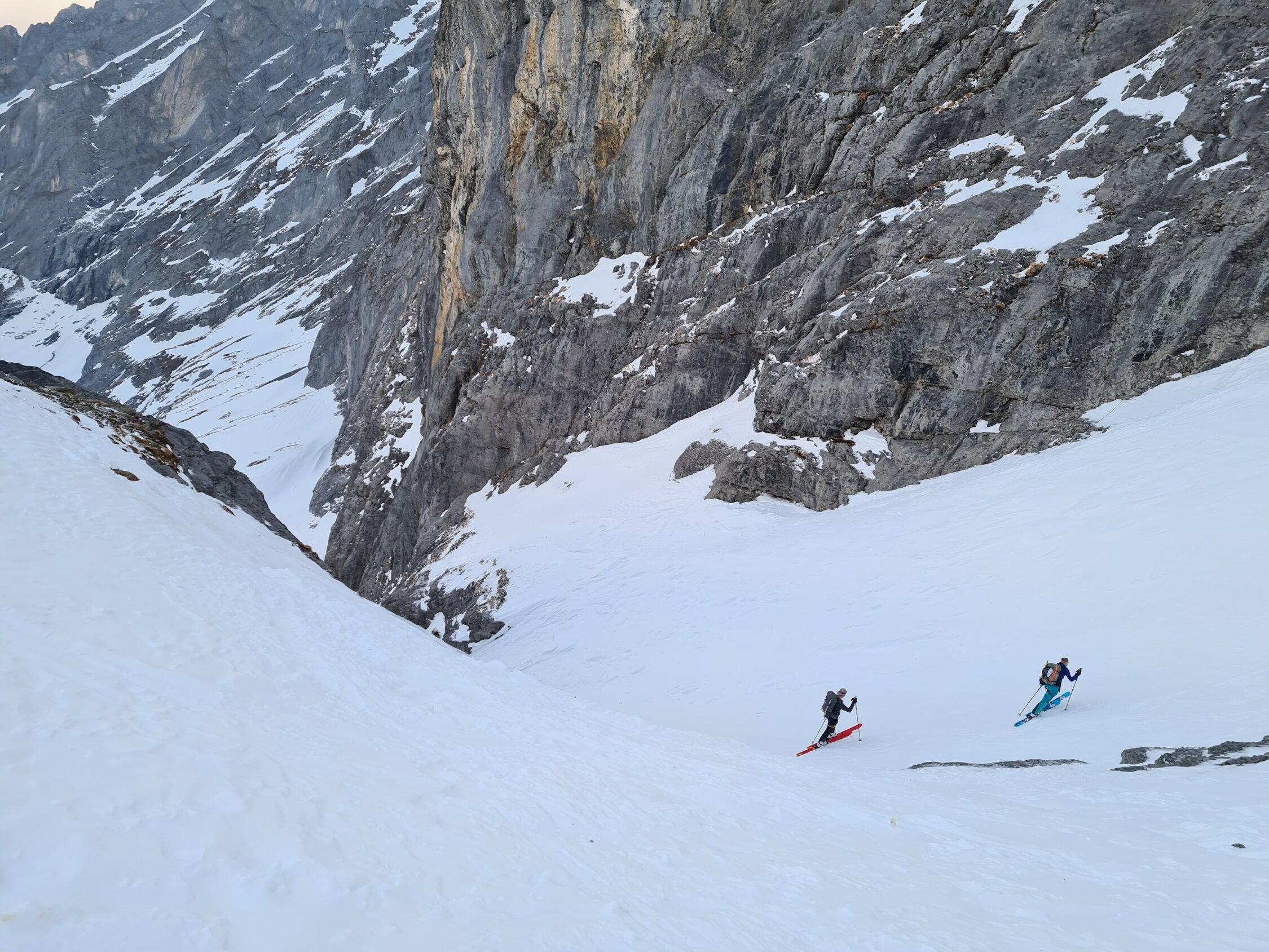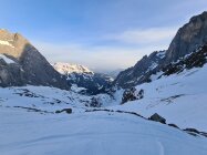 Wir sind um 4.00 Uhr in der Rosenlaui gestartet. Durch den Wald war es hart und wir mussten mit Harscheisen laufen. Über die Moräne Richtung Rosenlauibivak sind gute griffige Verhältnisse auch das steile Couloir hoch konnten wir gut mit Harscheisen laufen. Der Gletscher ist sehr schön eingeschneit und man konnte tiptop durch die Spaltenzonen hindurch. Natürlich am Seil verstehrt sich. Restliche Tour konnte komplett ohne Harscheisen gelaufen werden. Gipfelhang mit Steigesen vom Wettersatzel hoch ist gut machbar. Steil aber es hat schöne Tritte. Die Abfahrt hat alles von hart zuoberst über etwas Pulver vor der Spaltenzone über ganz leichten Bruchharst bis Sulz zuunterst.