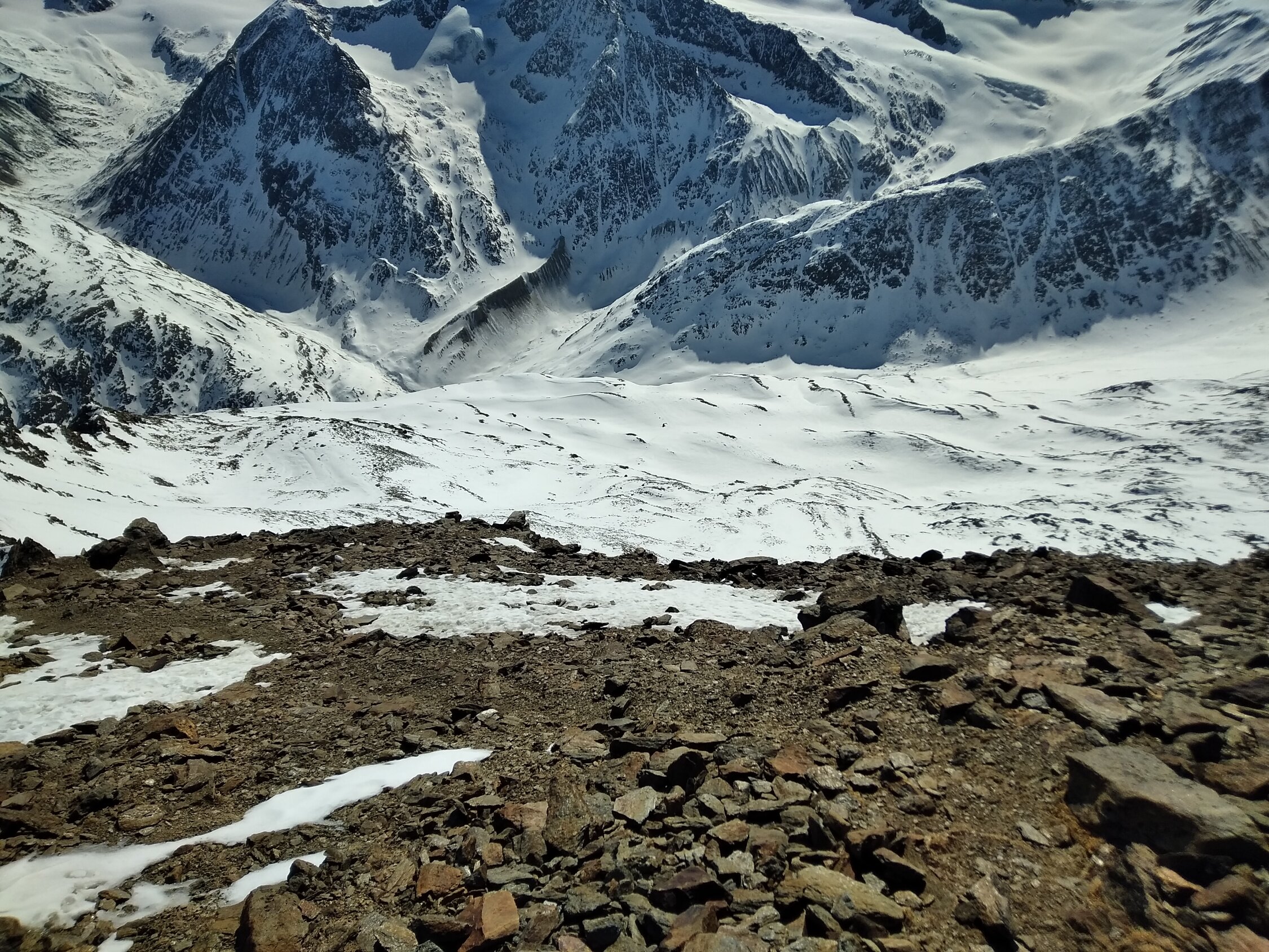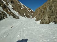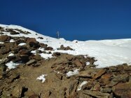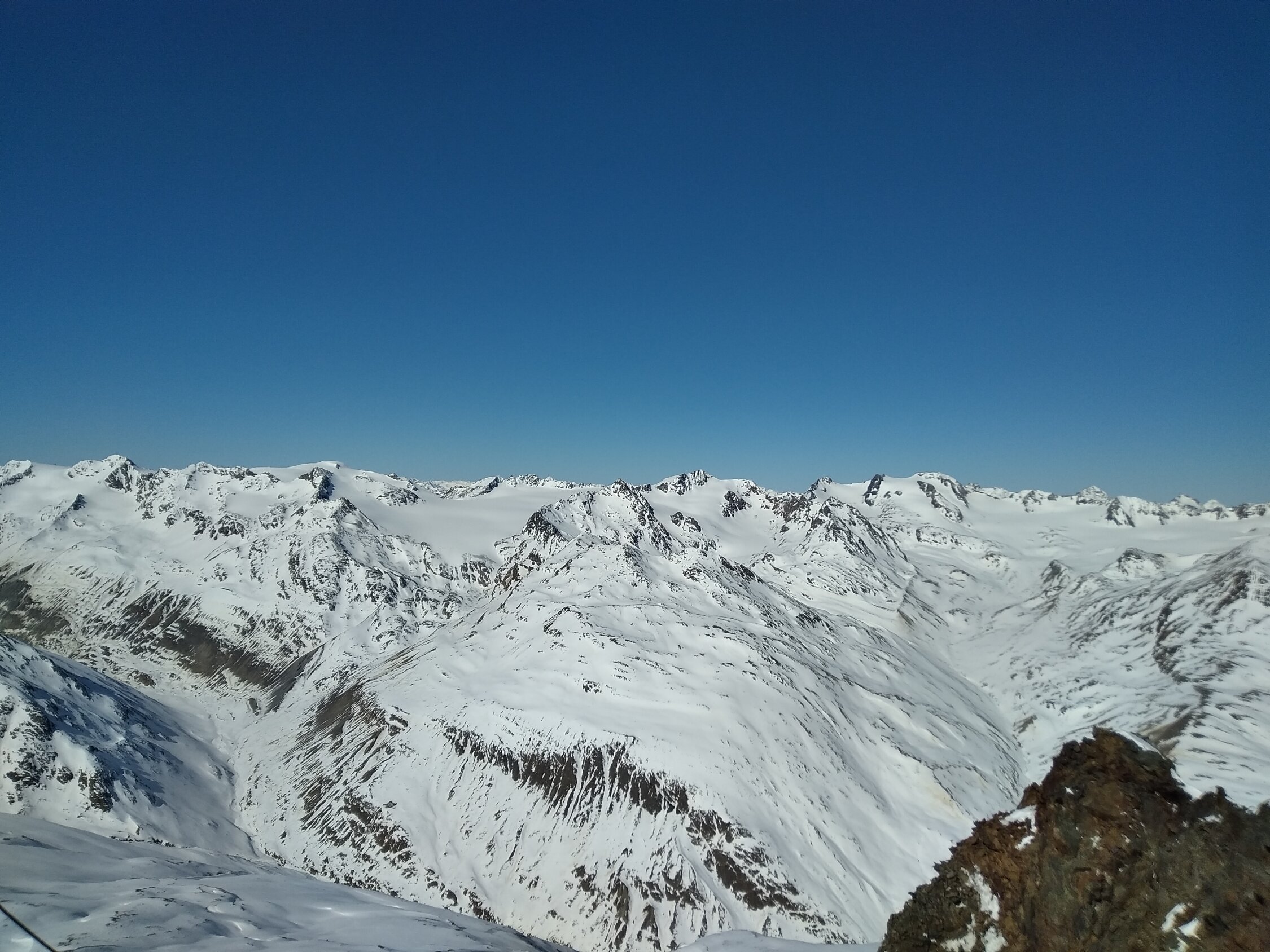 Ski die letzten 50 Meter unter dem Joch auch den Rucksack gschnallt. Der Firndeckewar zu hart. Voom Joch ebenfalls zu Fuss auf den Gipfel. Skidepot auf dem Joch. Bei Abfahrt Schnee aufgesulzt und schön zu fahren. Abfahr dann nach Vent durch das Tal.