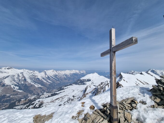 Schnee ziemlich hart, auch bei der Abfahrt um ca. 12 Uhr. Unten einige Trage-Passagen. Mit zeitweiligem Wind eher kühler als erwartet.