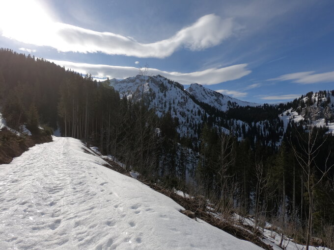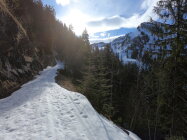 Auch auf Forstweg wird es ganz kurze Tragstrecken geben. Sicher noch lohnenswert! Gipfelhang flach ist noch nicht gebacken…ev nächste Woche…
