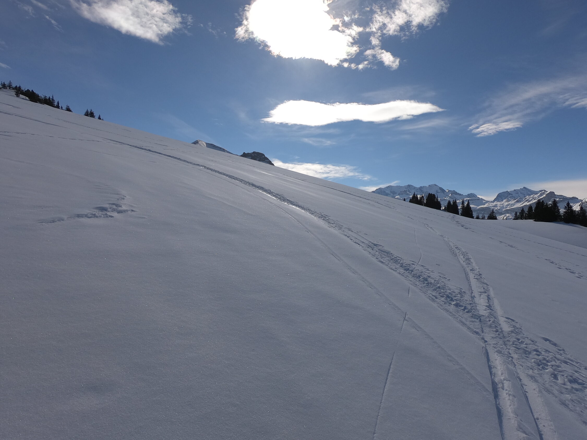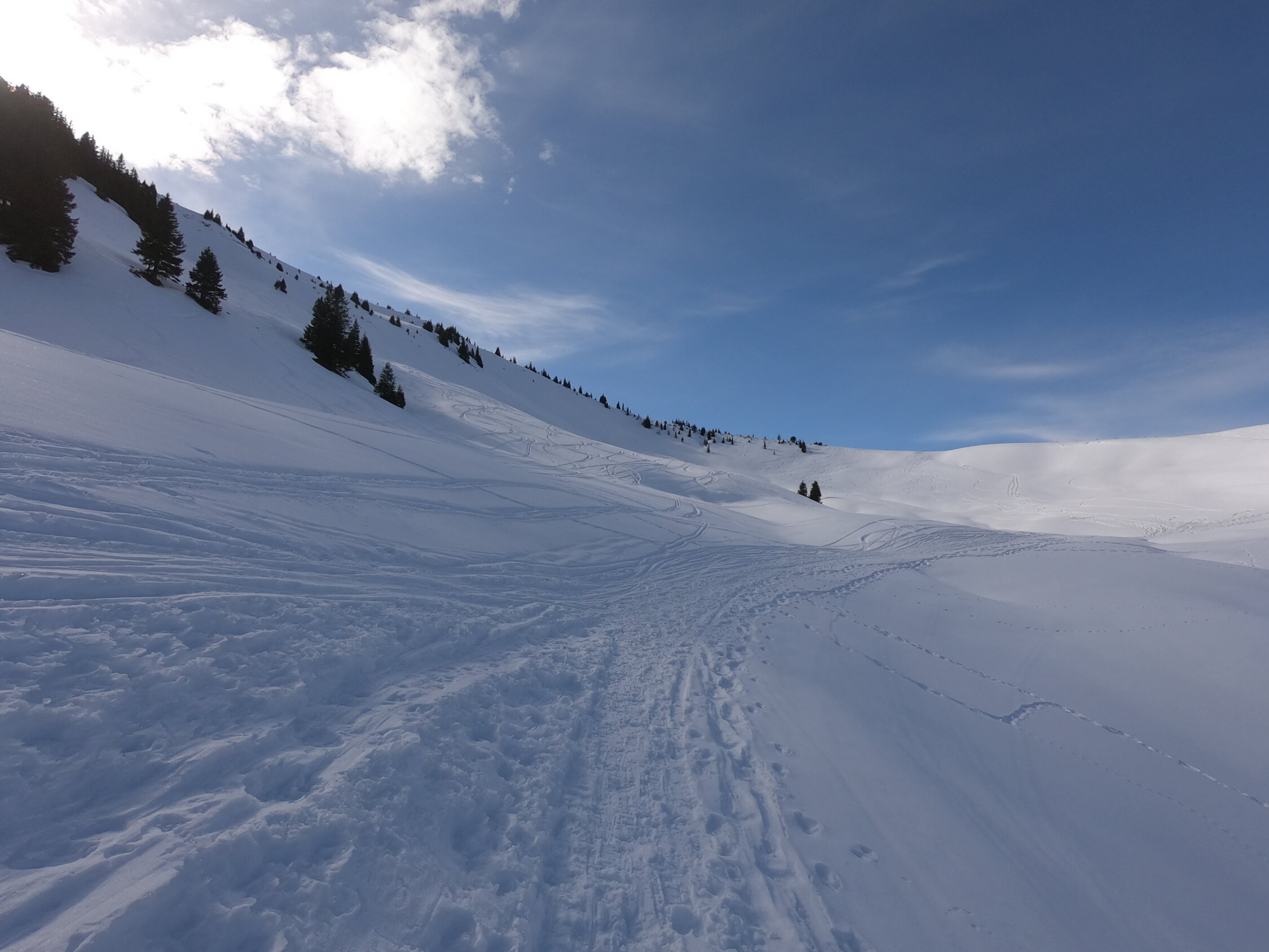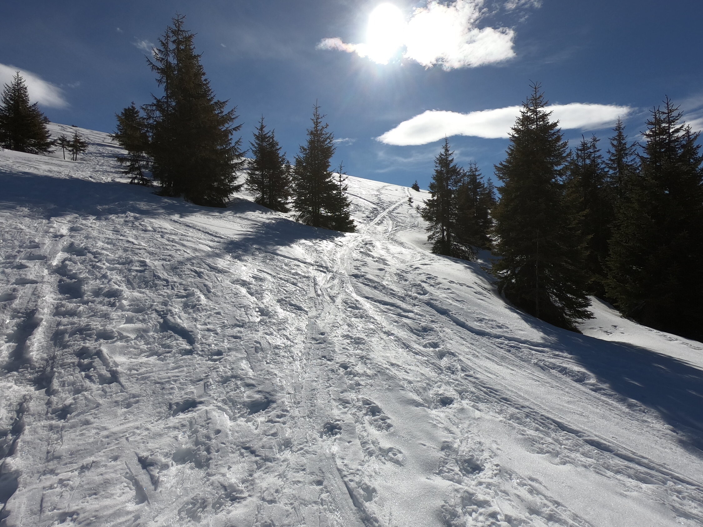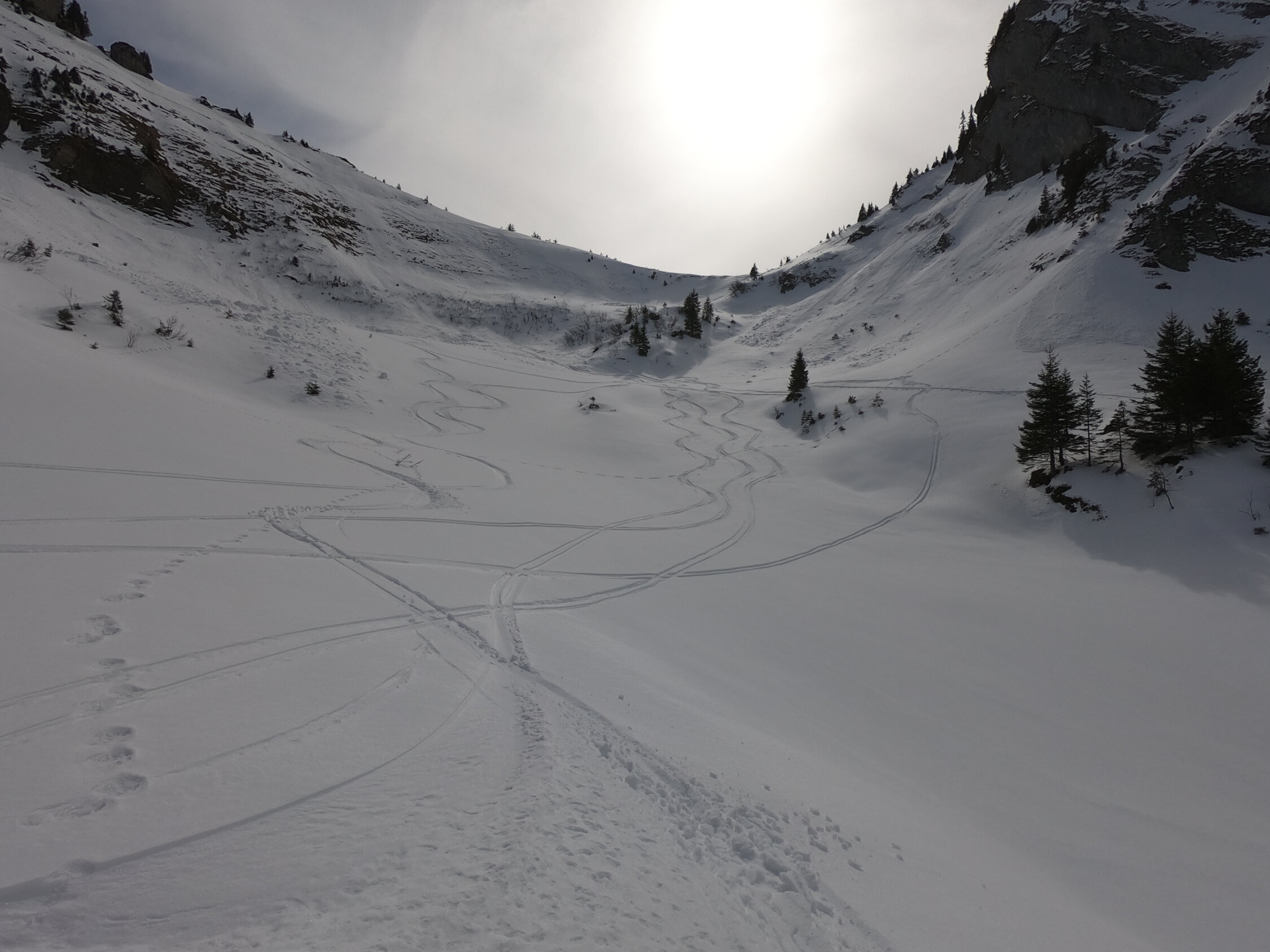 Abfahrt kurz Sulz Südseite Übergang zu Pulver Nordseite. Wirklich schönen Pulver gefunden!