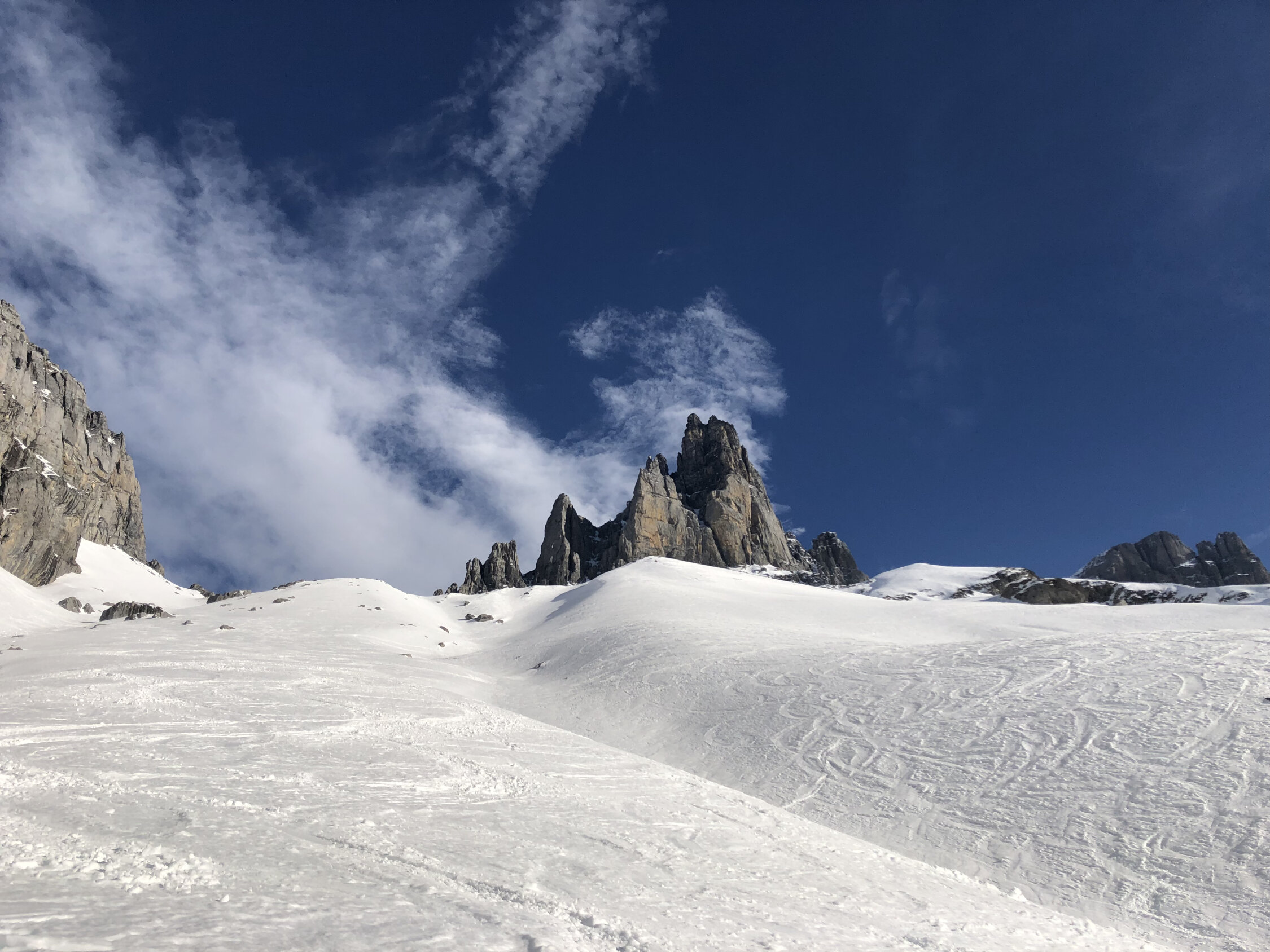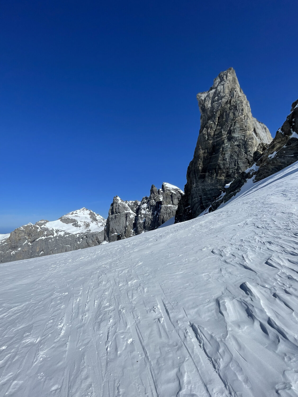 Wir haben uns für den Übergang vom Meiental ins Engelbergertal entschieden. Sind deshalb mit dem ÖV und Schneetourenbus angereist, Start der Tour somit verhältnismässig spät um 08:30 in Färnigen. Aufstieg über Steilstück unterhalb Chüefadfirn trotz Hartschnee geht mit Harscheisen und entsprechender Übung gut. Auf dem Chüefadfirn war der Schnee dann bereits leicht aufgesulzt. Für die Querung vom Chüefadpass zum Spannortjoch haben wir die Felle aus Zeitgründen drangelassen, was die erste kurze Abfahrt mit harten und verblasenem Schnee etwas schwierig gestaltete, jedoch machbar war. Der Aufstieg vom Skidepot zum Gipfel war trotz fortgeschrittener Tageszeit (Start Skidepot kurz vor 14:00) mit Steigeisen und Pickel gut machbar. Das mitgenommene Seil haben wir nur zum Abseilen über die zweite Felsstufe im Abstieg verwendet.