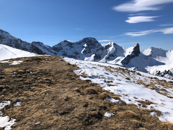 Ab Wochenende vermutlich Tragepassagen in den sonnenbeschienenen Hängen ab Gräsalpe. Deckel auf den pulvrigen Bereichen wahrscheinlich.